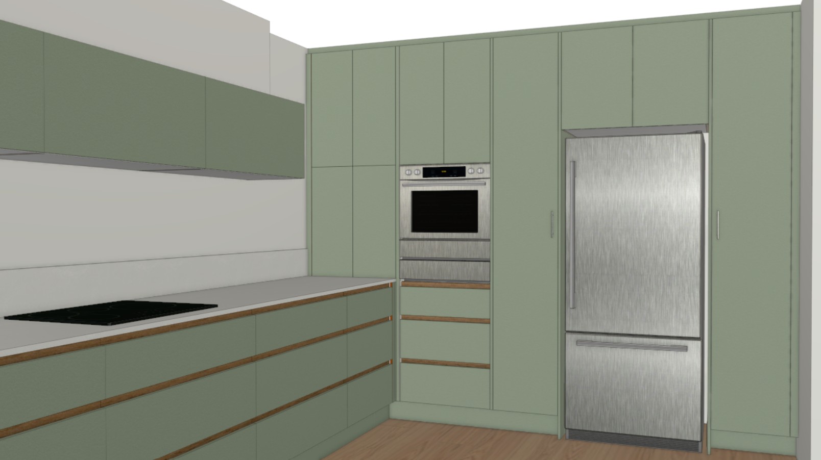 add natural lighting into space add kitchen decor have a lady standing and opening the fridge