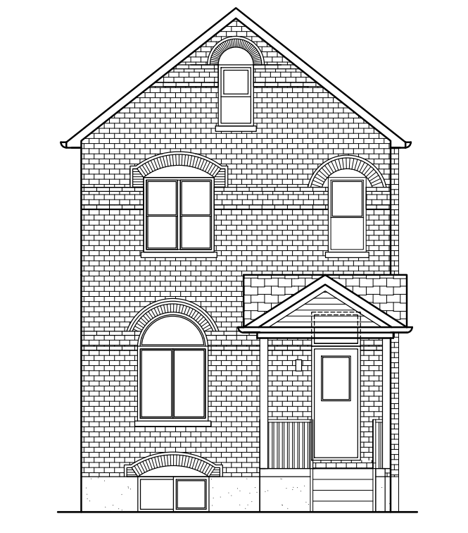 make a rendering of this house in hamilton ontario in a traditional style the porch is poured concrete with wood posts and shingle roof the brick is orange redish