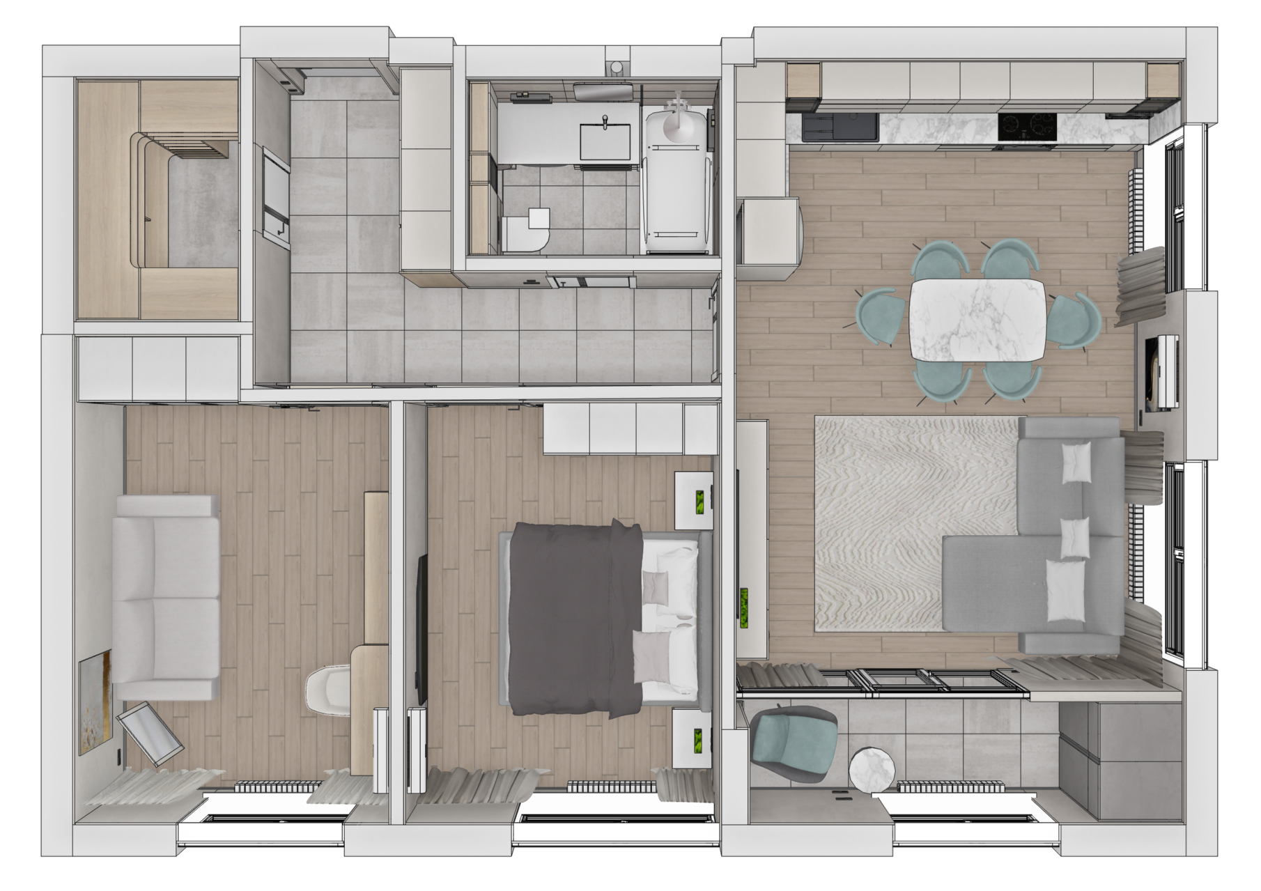 slight realism improvement soft natural light from windows very subtle warm lighting realistic shadows minimal enhancement keep original layout and furniture positions keep original colors and materials