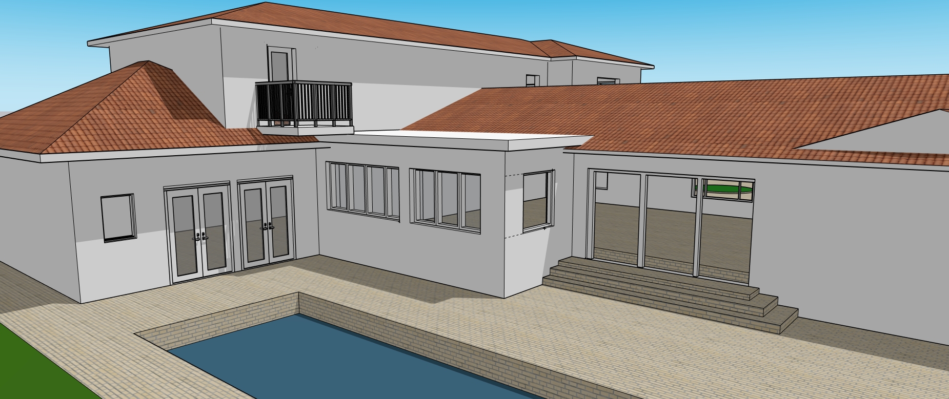 a modern two story house with a minimalist spanish style design the exterior walls are painted in crisp white complementing the sleek white window frames the roof is clad in terracotta tile adding warmth and texture surround the house with lush green grass and a neatly paved driveway made of light gray cobblestones the sky above is a clear azure blue with soft fluffy white clouds adding a serene touch the atmosphere is peaceful and inviting evoking a sense of tranquility and modern elegance tropical luxurious landscape
