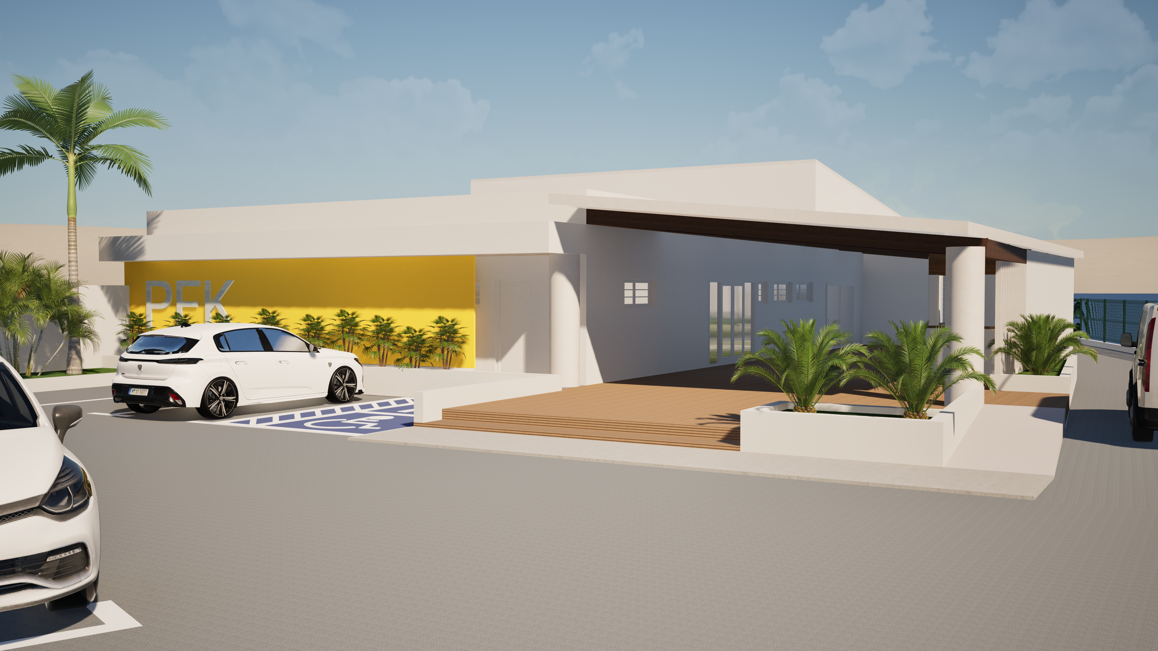n diter que le ciel et l arri re plan ne jamais modifier le b timent formes mat riaux couleurs d tails ni le premier plan remplacer le ciel par un ciel bleu tropical lumineux avec quelques cumulus blancs doux ambiance plein soleil ajouter en arri re plan derri re le b timent une v g tation tropicale luxuriante palmiers bananiers monstera foug res densit r aliste chelle coh rente sans chevaucher ni masquer le b timent harmoniser la lumi re et la colorim trie pour un rendu promotion immobili re haut de gamme r aliste propre sans dominante de couleur contraste fin et micro d tails nets aucun nouvel objet aucune personne aucun animal aucun texte format de sortie 4k 3840 2160 negative prompt ne pas toucher au b timent ni au premier plan aucune d formation pas d artefacts pas de halos pas de flou excessif pas de v g tation qui recouvre le b timent pas de couleurs satur es n on pas de grain important pas de lens flare agressif pas d eau mer si absente pas de texte
