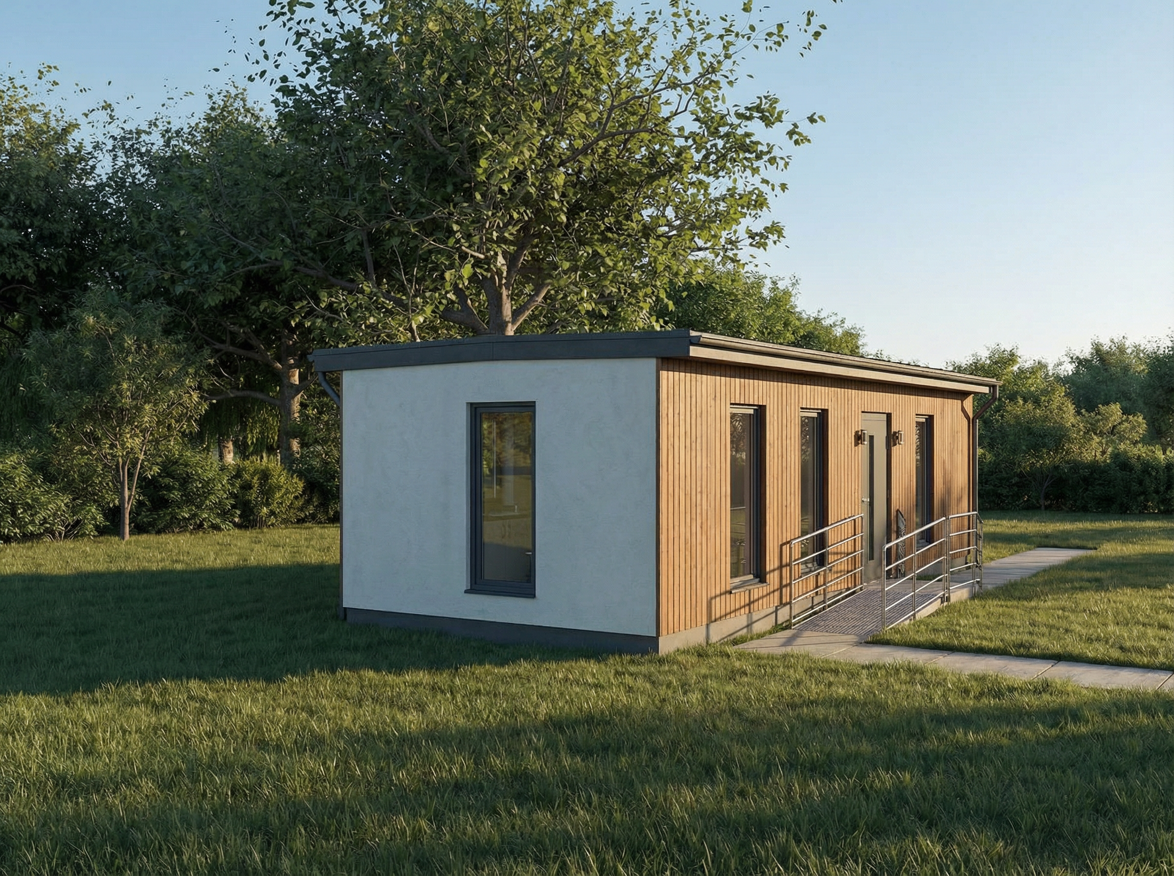 create a realistic daytime render with natural daylight and soft shadows the fa ades consist of vertical panels with a width of 1 meter each clearly readable in scale and rhythm place medium height shrubs flowers and plants in the two planters balanced and well maintained without overgrowing the fa ade apply realistic window reflections showing sky and surroundings the logo is directly applied to the fa ade surface flat and frameless integrated cleanly into the panel system photorealistic materials accurate lighting and a clean contemporary appearance