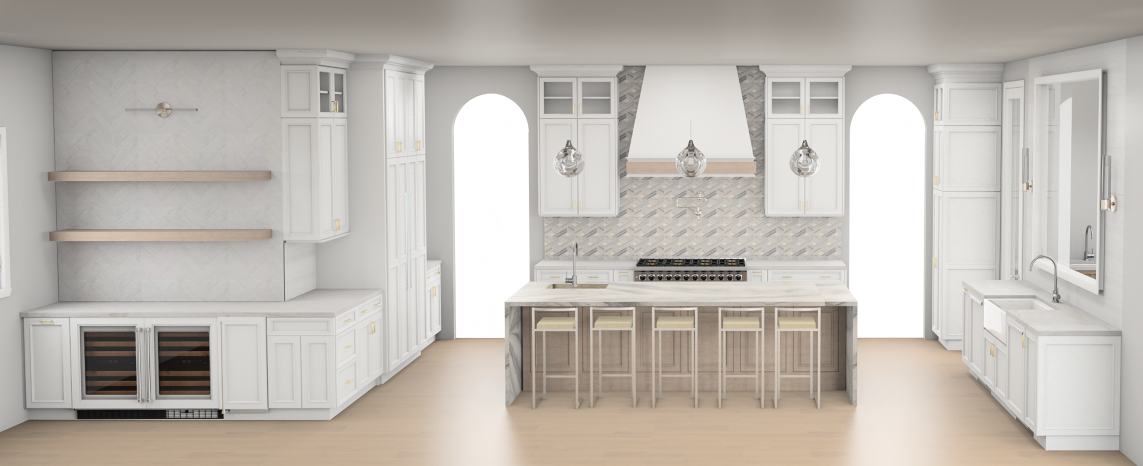 create a hdri photo realistic rendering do not change any image details do not move or modify features keep the colors the same make the rendering photo realistic with 4k resolution add natural sunlight facing cabinetry