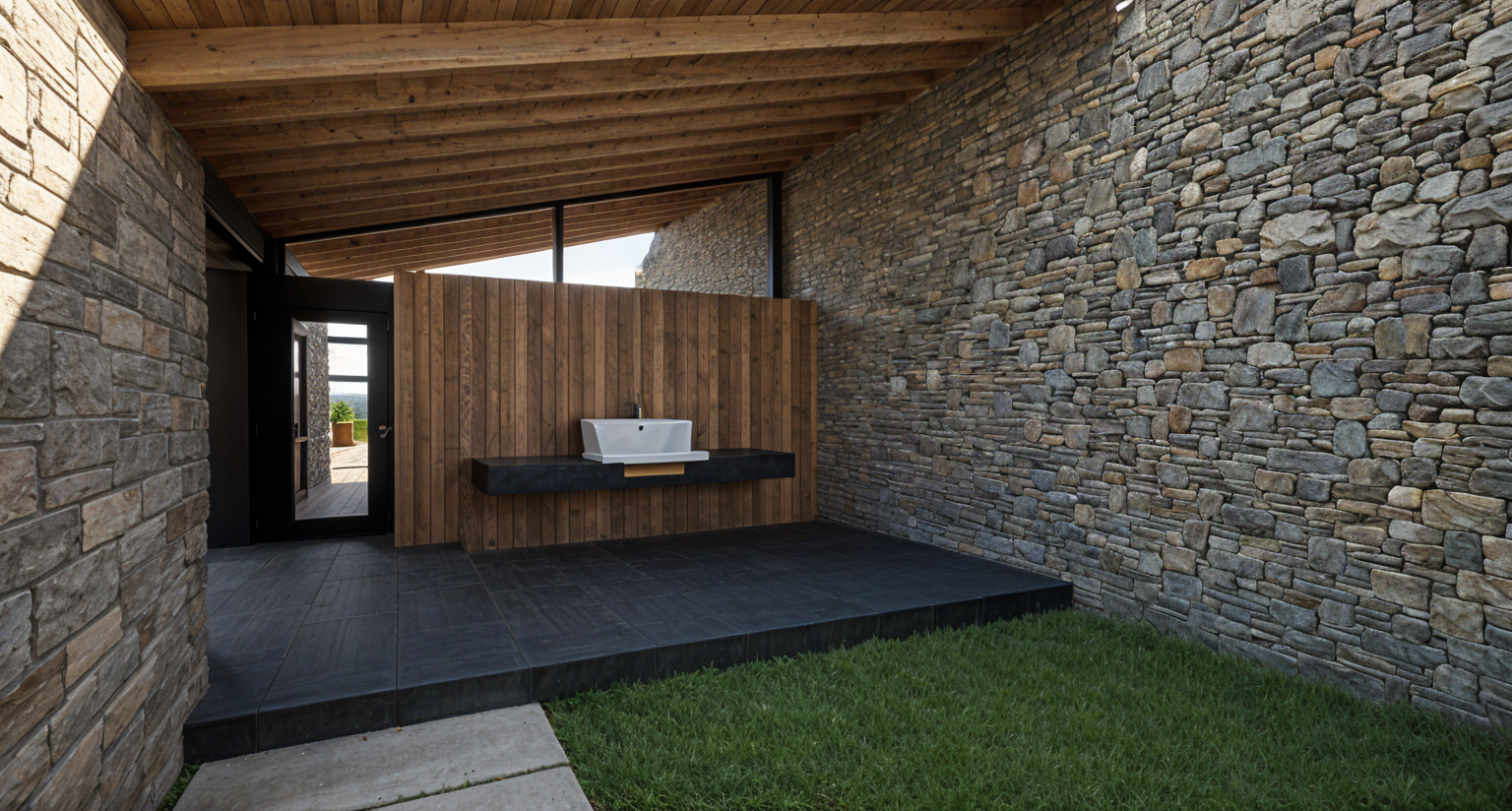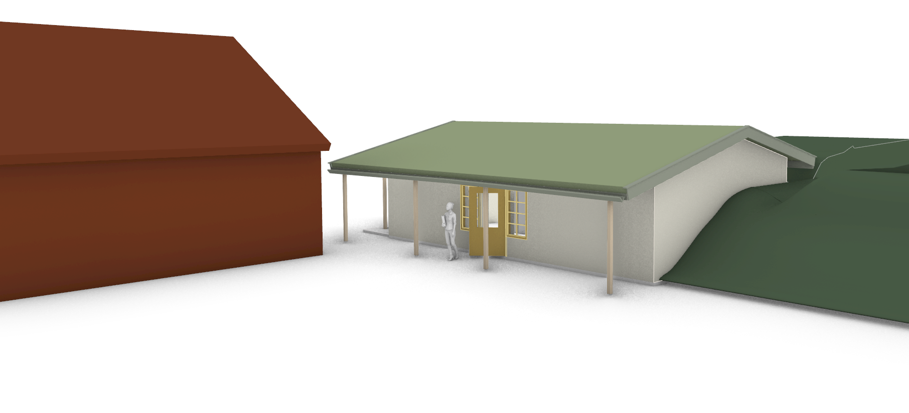 dont change much but but a meadow on the roof of the small house make the ground look like gravel make the red house look like it has standing panel