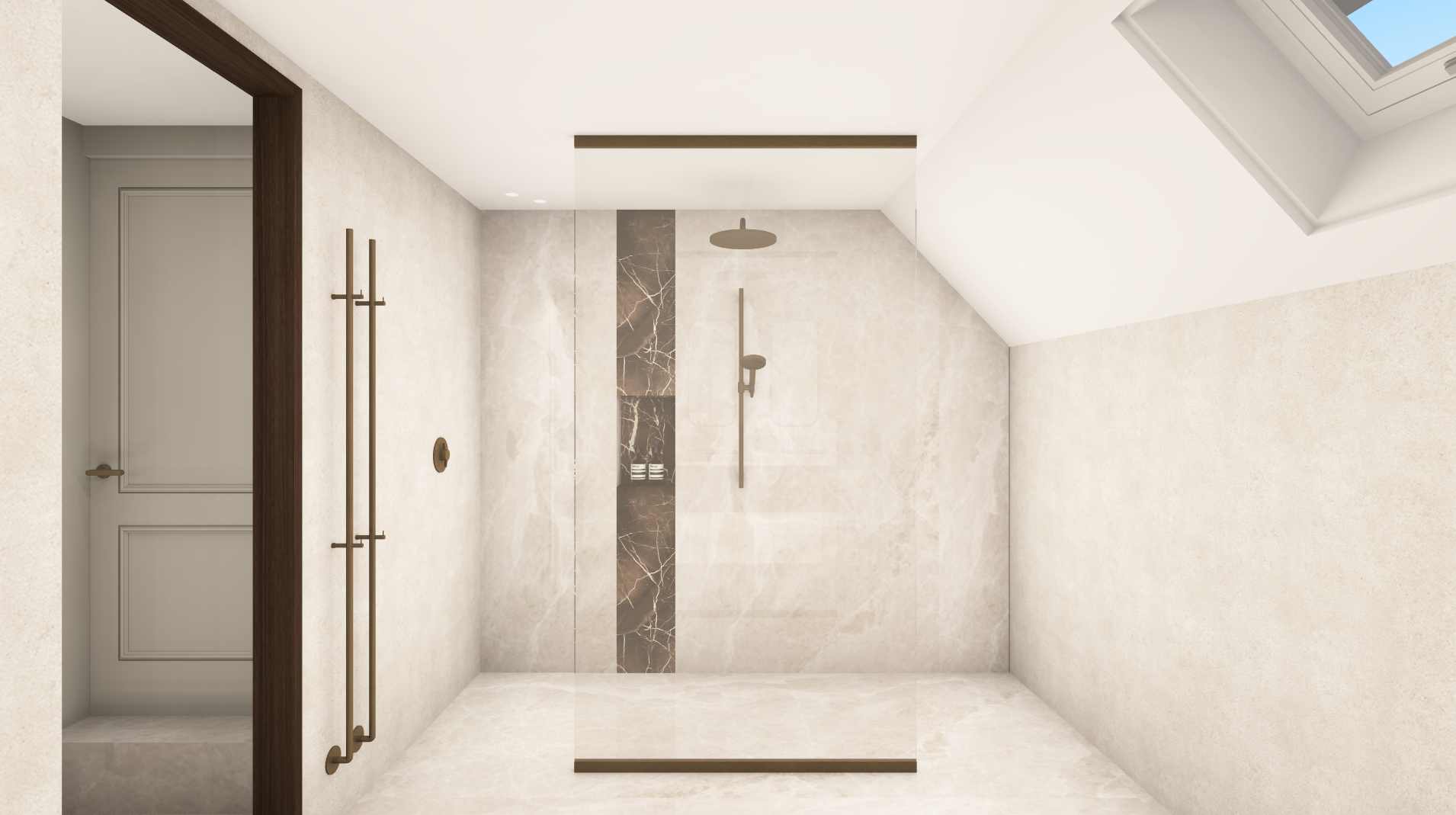 transform this image into an ultra realistic 3d photorealistic render preserve the exact original perspective camera angle proportions composition and geometry without any distortion or structural changes refine and enhance all materials to a high end interior standard using physically accurate pbr textures materials may be improved in quality and realism but must remain consistent with their original intent and placement do not introduce unrealistic or unrelated materials replace the floor with light natural stone elegant and refined with a soft subtle gloss finish the stone should have a calm minimal appearance with delicate and understated veining or texture no heavy patterns or strong contrasts create a warm hotel chic atmosphere with a refined and upscale look use a harmonious palette of warm neutrals beige champagne soft browns rich tones and elegant finishes apply soft balanced lighting with reduced contrast avoid harsh highlights and deep shadows use gentle transitions between light and shadow soft ambient illumination and a warm color temperature to create a calm and luxurious mood use a professional full frame camera look with realistic depth of field accurate exposure and soft tonal range no harsh contrast maintain clean flawless surfaces no dust no scratches no damage ensure a high resolution sharp output 8k quality with lifelike colors and a premium interior design feel do not redesign the space only enhance material quality and atmosphere no stylization or artistic reinterpretation add lighting in de nieche