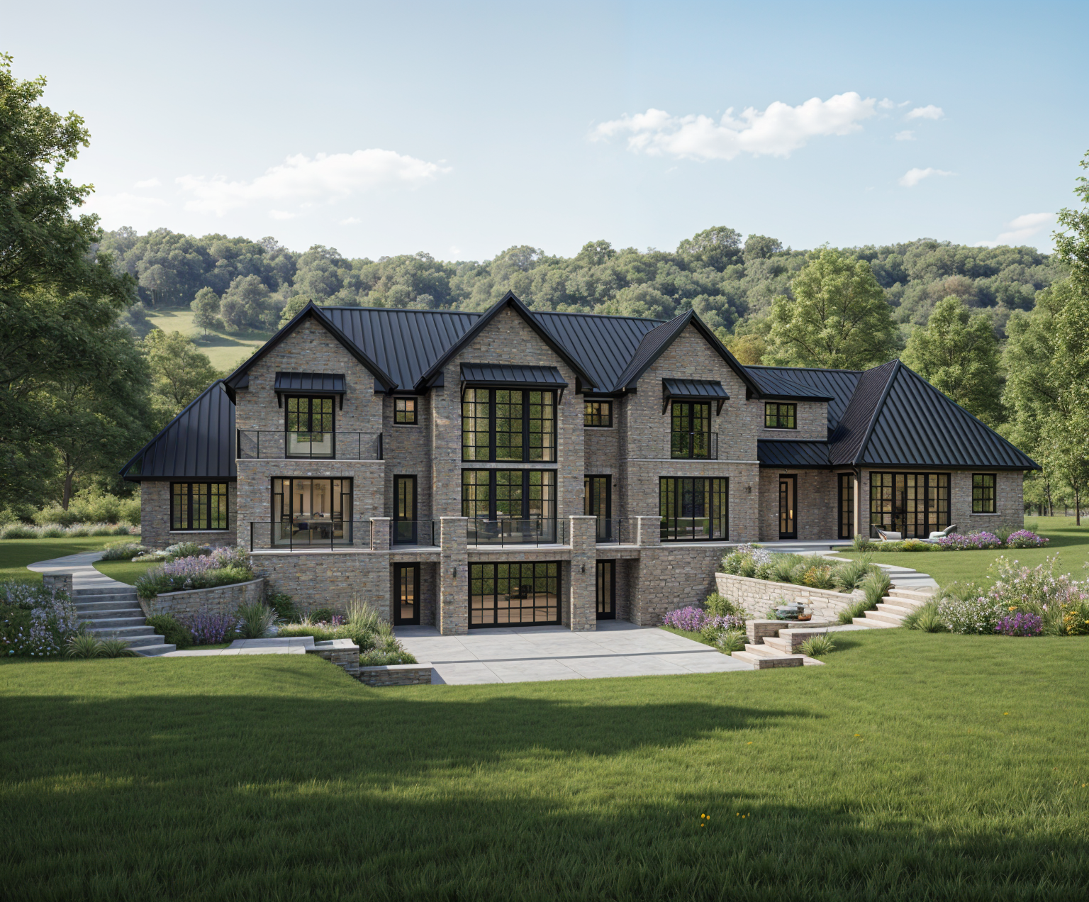 make it more realistic night version retain black railing at the terraces blue all apertures add few people