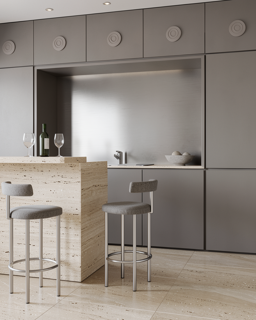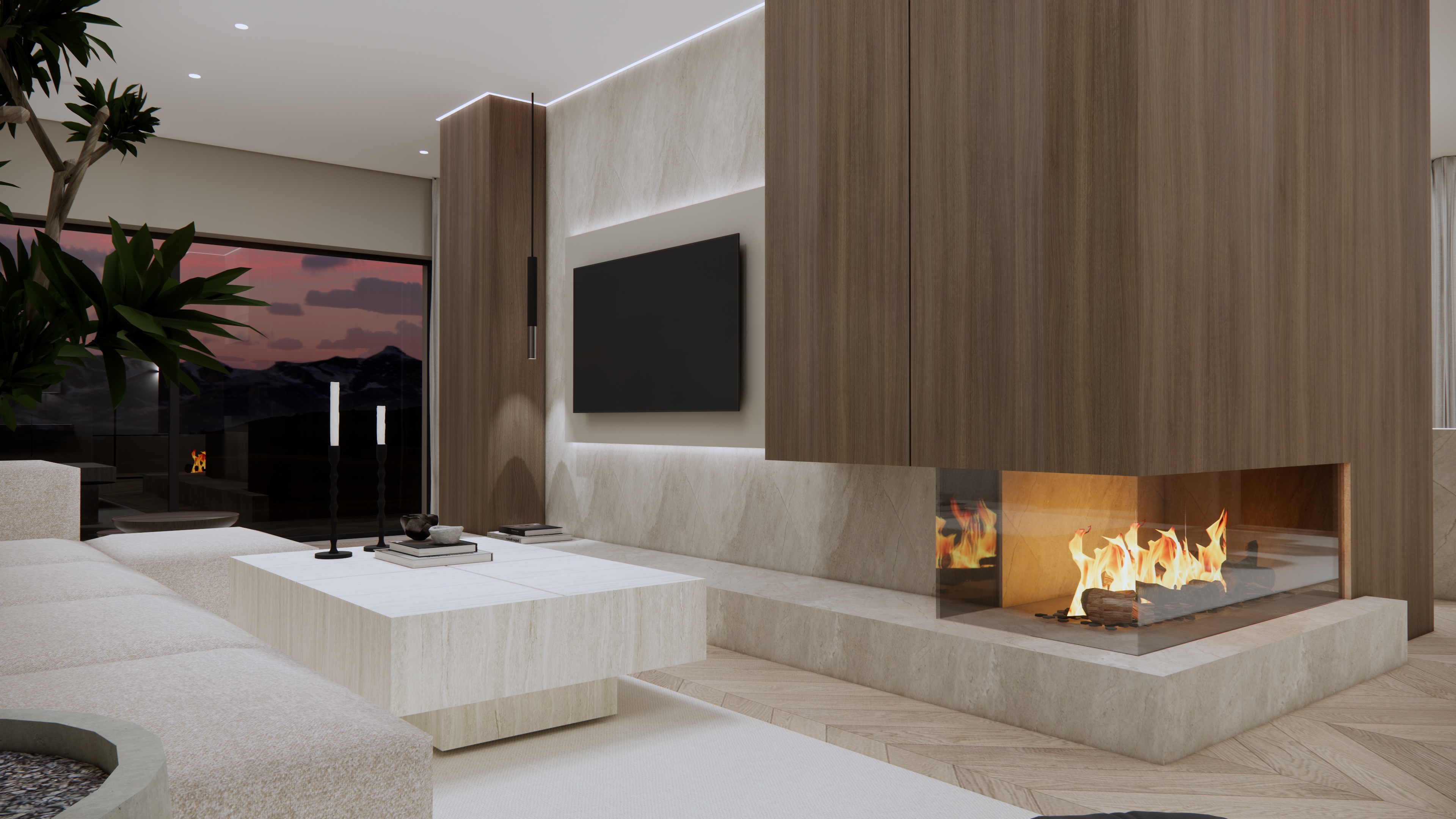 make it photo realistic and better quality keep everything exactly as it is from the design wood is medium brown natural soft daylight daytime in the views in the windows mountain view