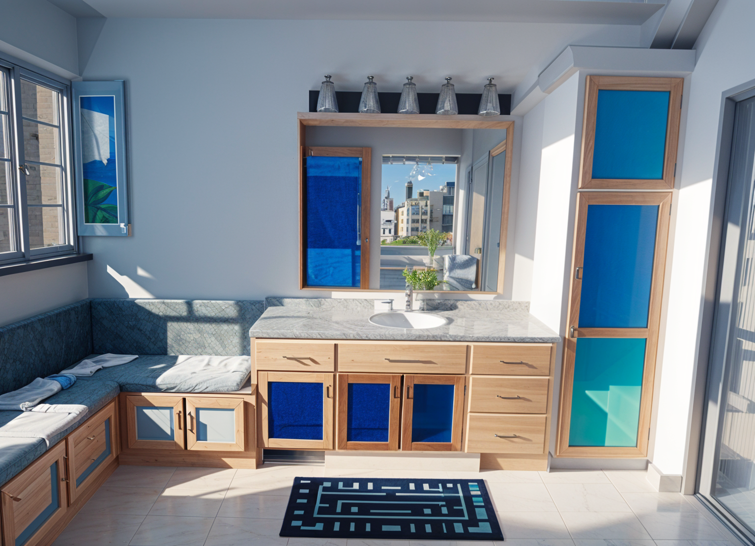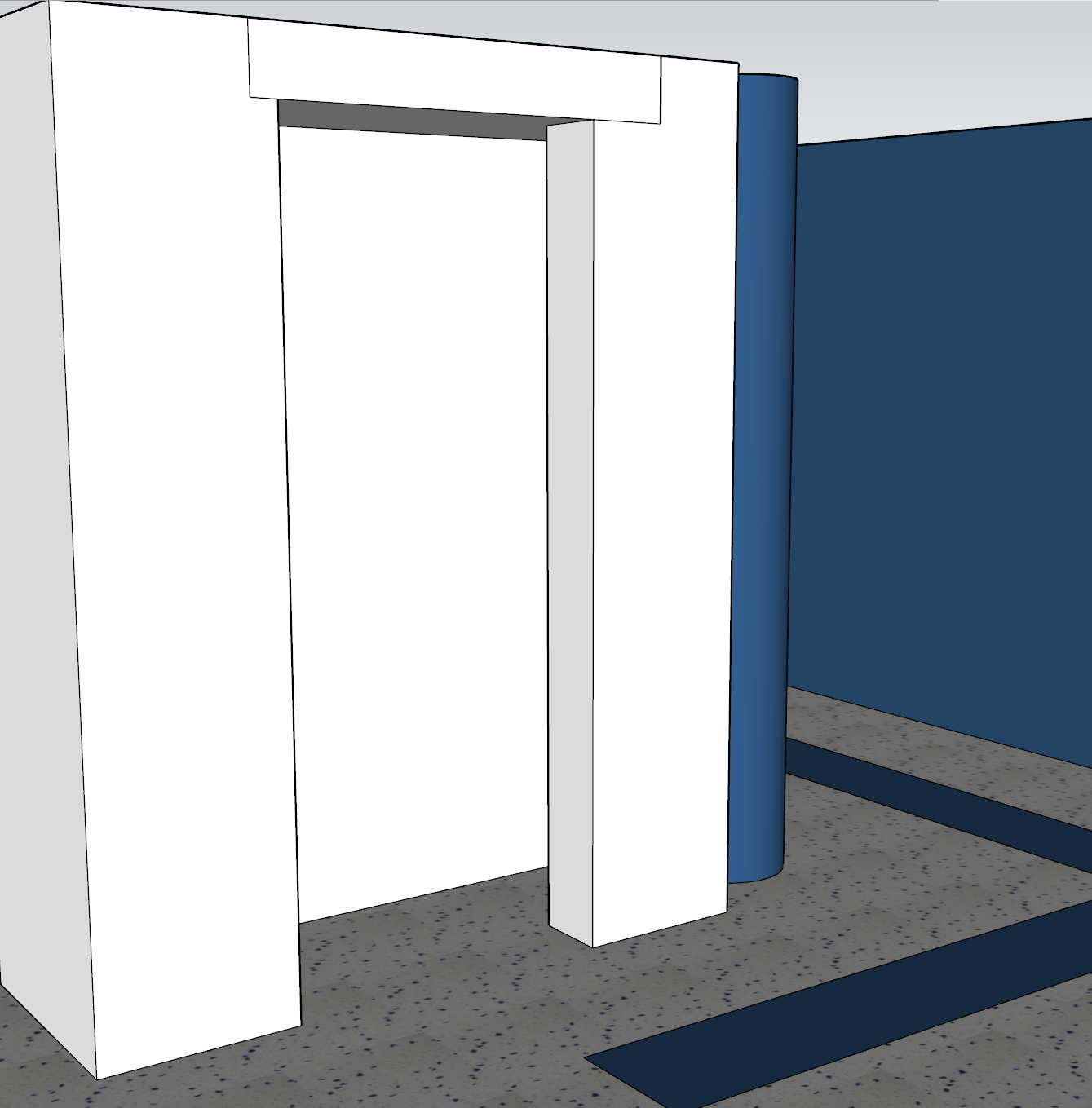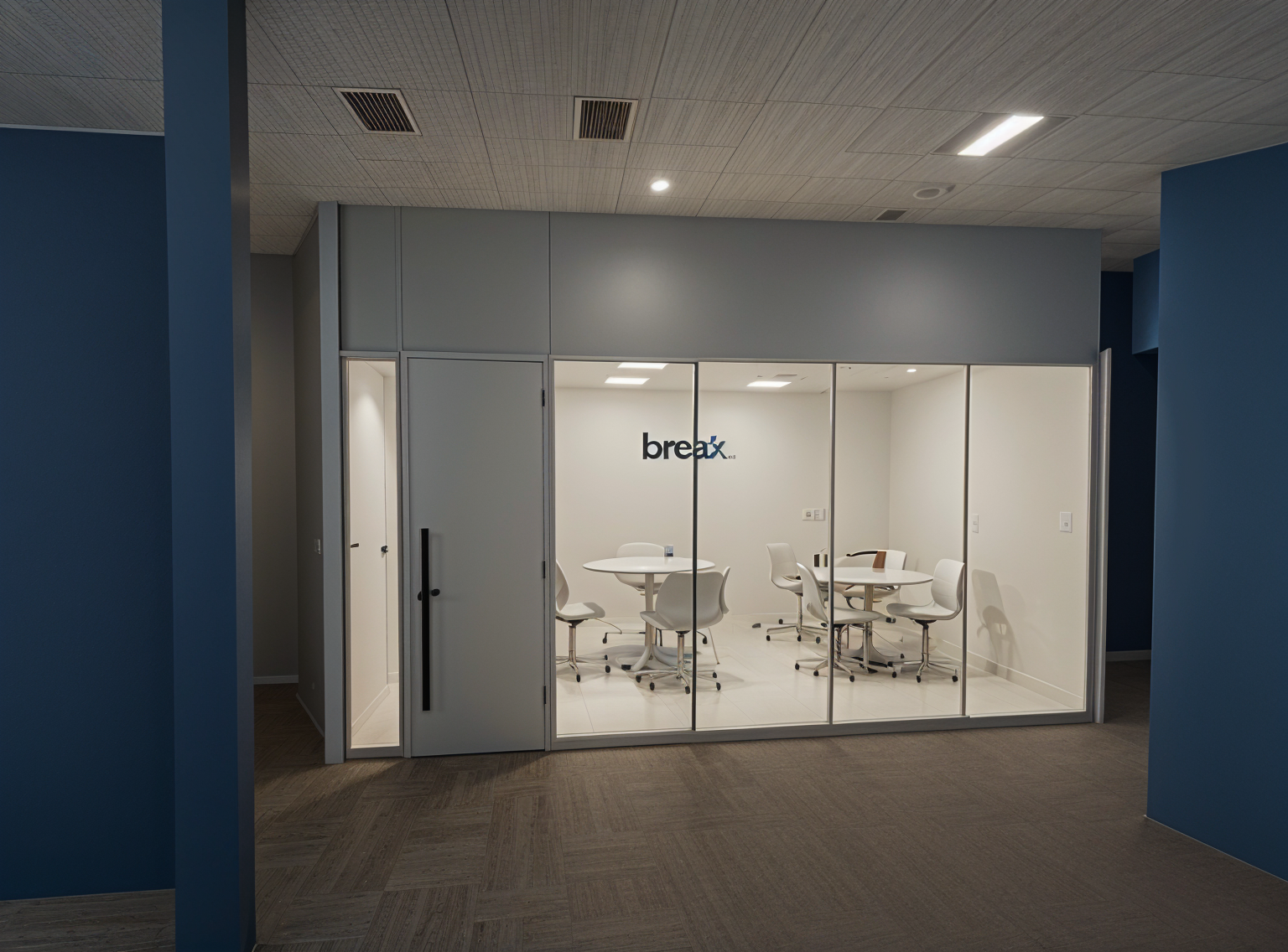 make the room on the left a mailroom with simple mailboxes and put a plain white sign somewhere