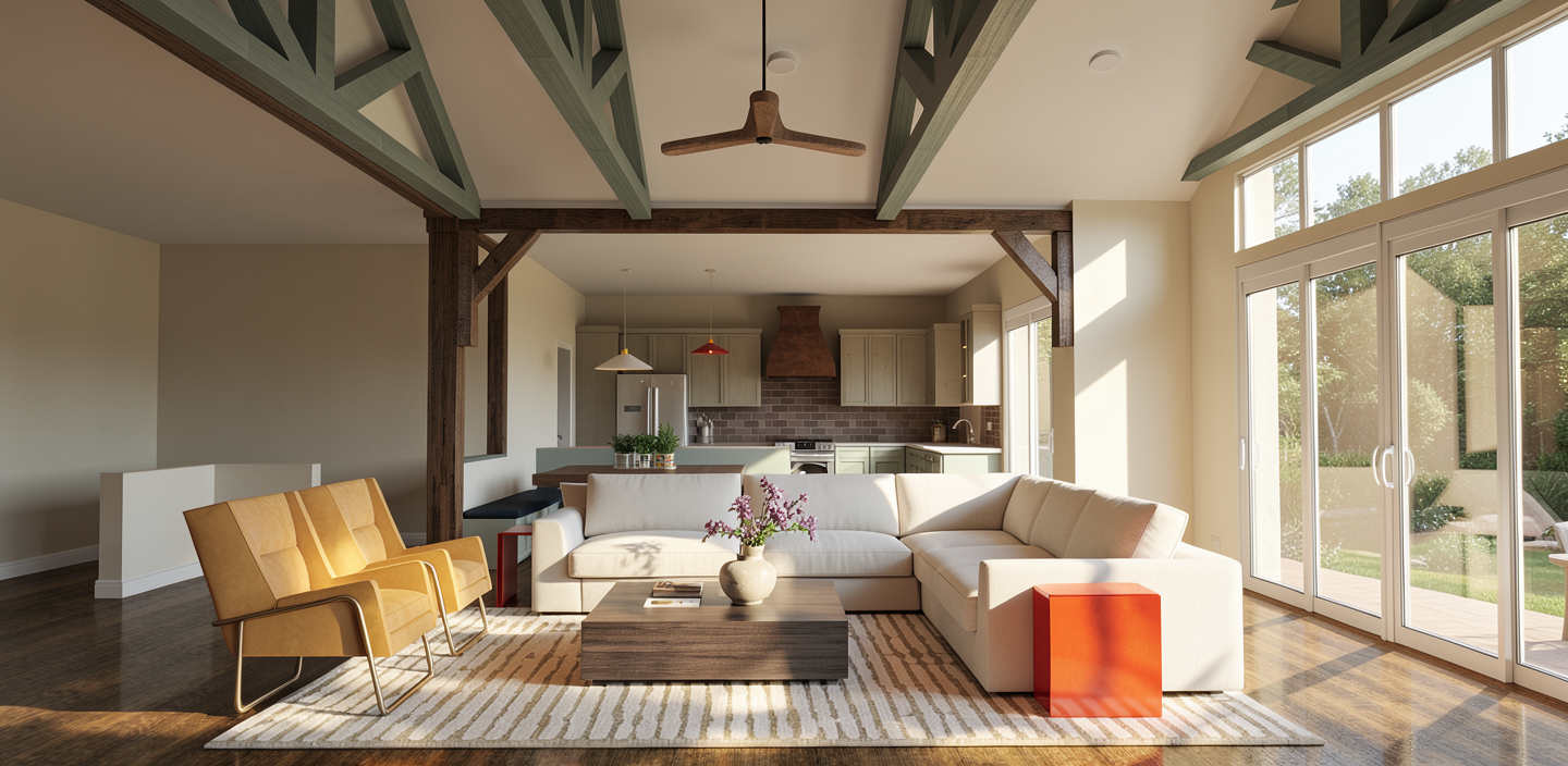 chnage nothing except add a window frame at the far corner in the same finish as the walls