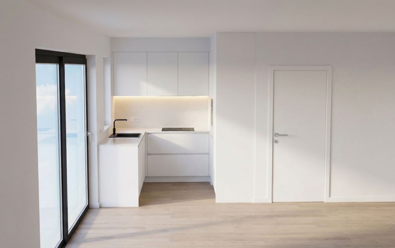 make the exterior wall beige stucco or limewash and add a big window to the right of the second door