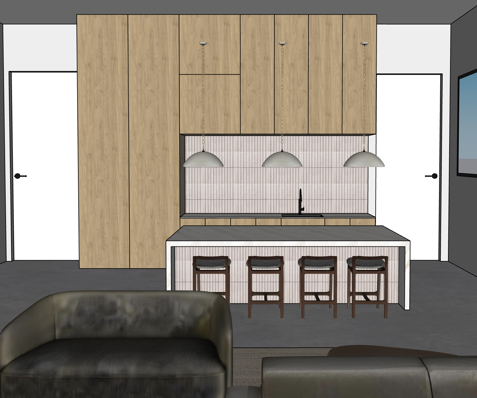 the pendant have gold chains on the top and the pendant is gray with a cement look