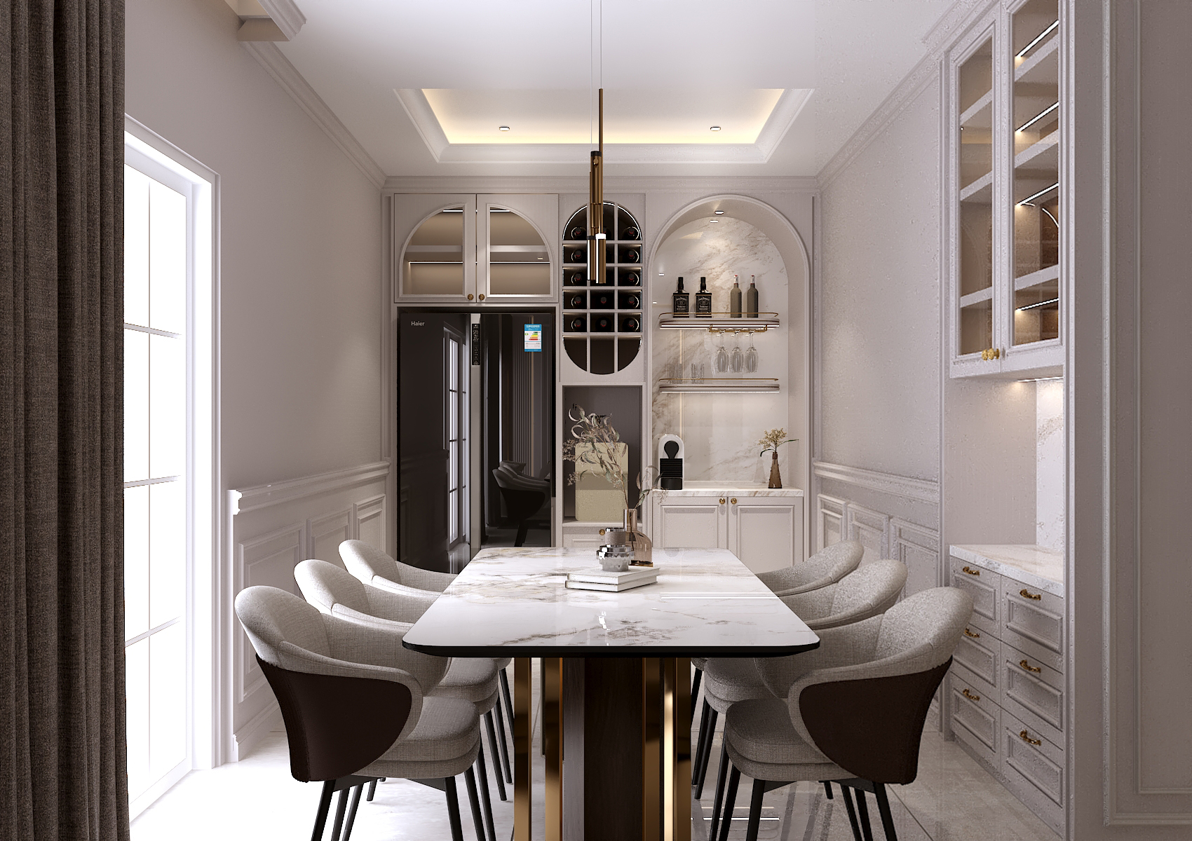 erase the drop ceiling and add tumblers decoration to the cabinet