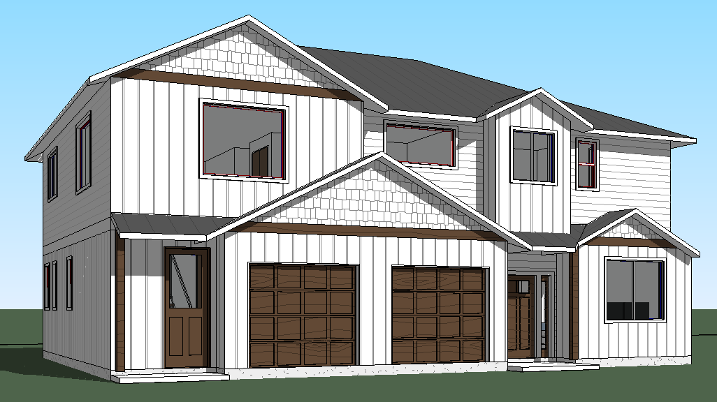 add natural lighting make look realistic add a driveway to the garages add surrounding trees and landscaping