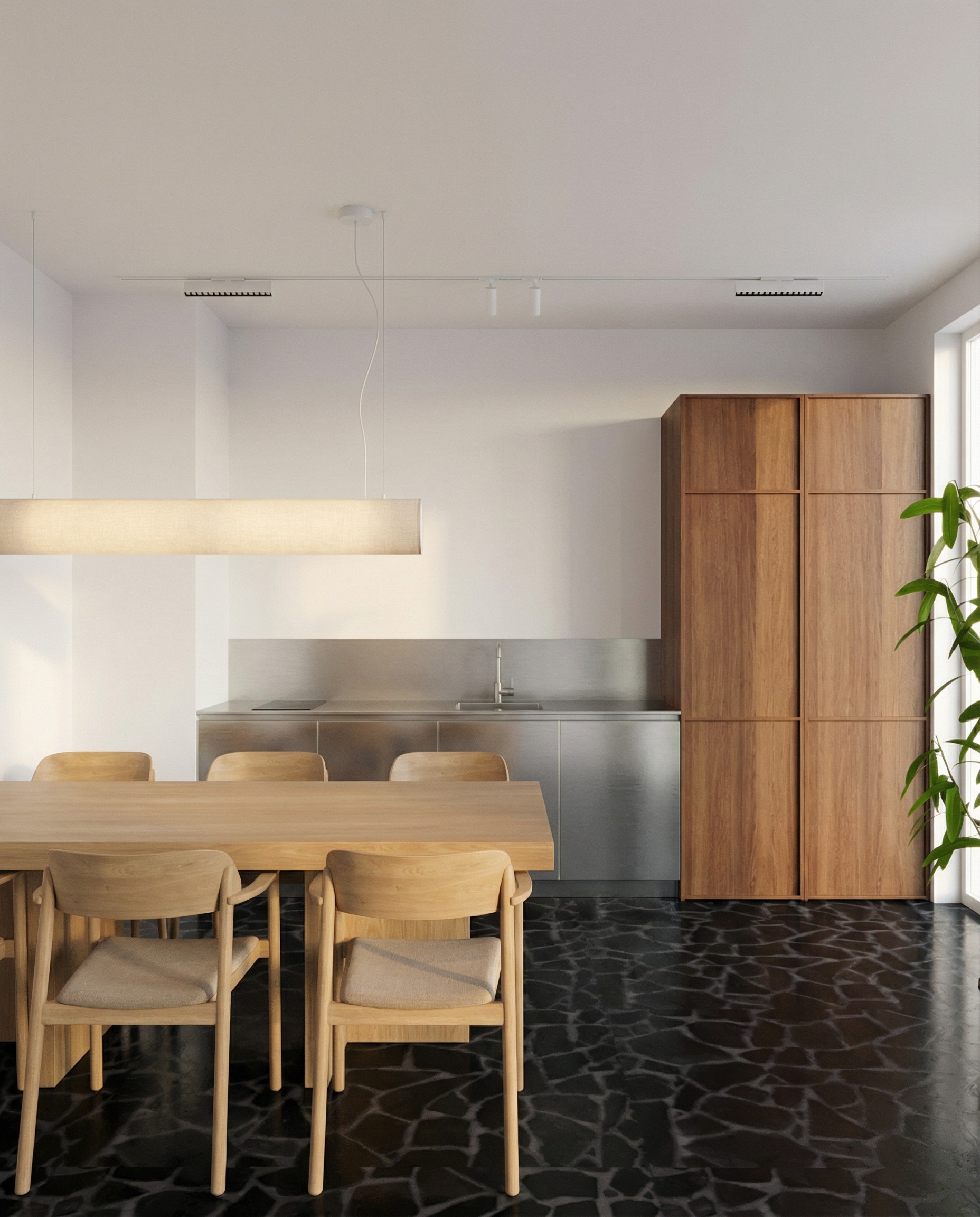 make the steel panel on the wall higher to the top of the furniture on the right