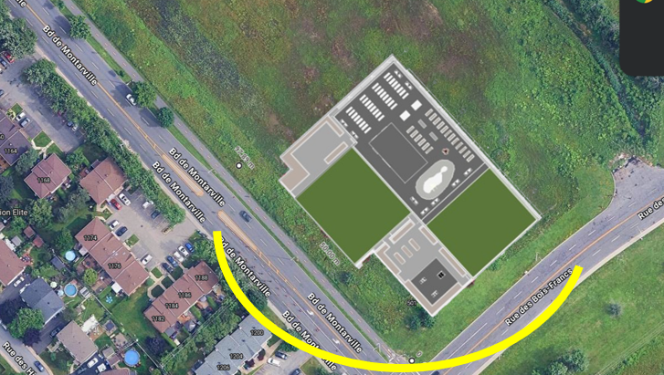 modernist aerial shot add solar path along the yellow line with sun pic do not change building much architecture