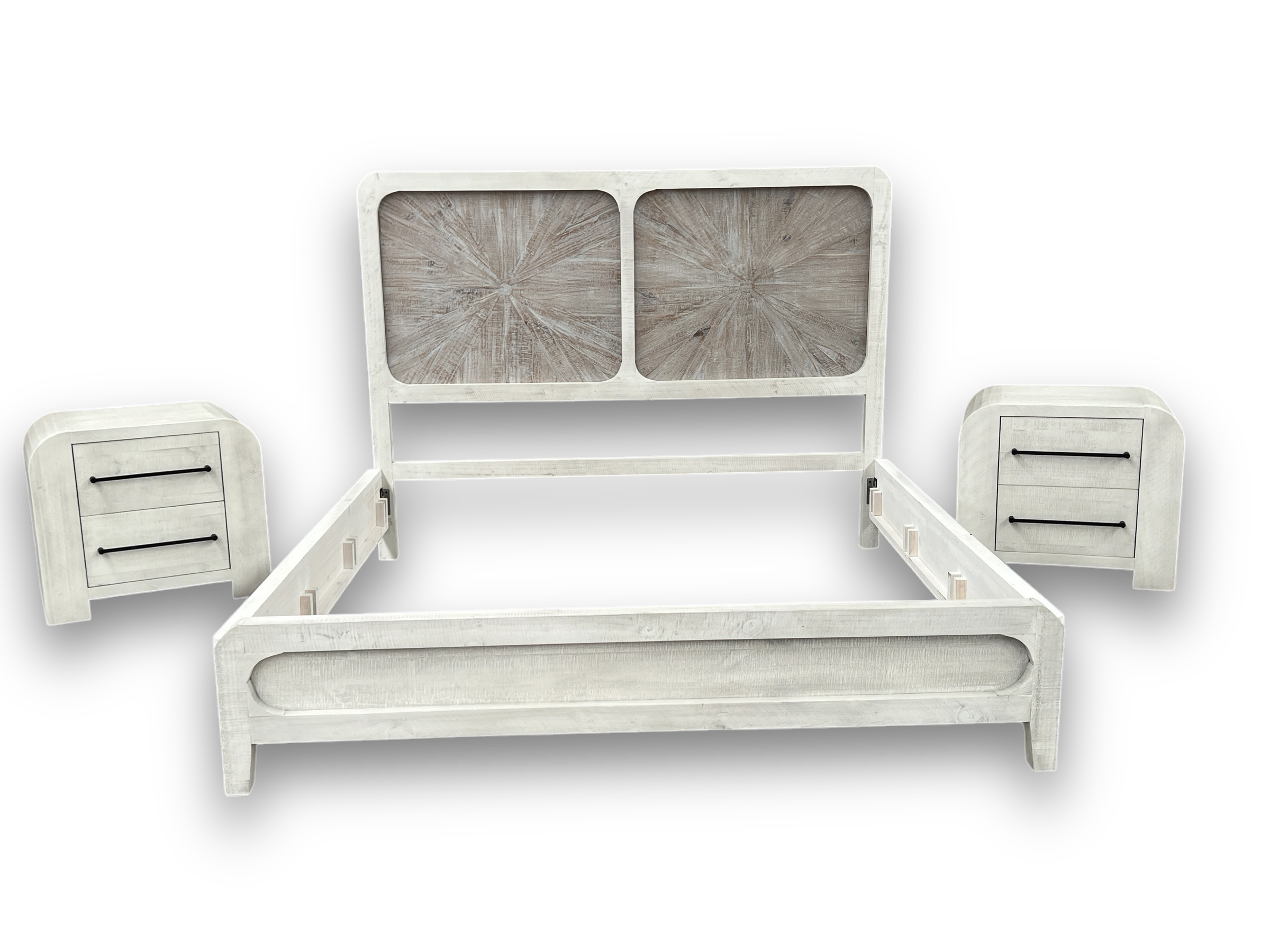 interior shot maintain furniture as in picture add mattress sheets and pillows with lamps on nightstands