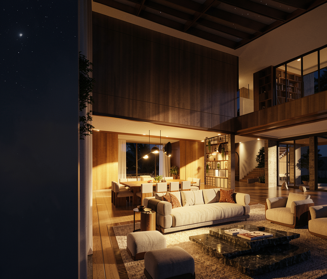 convert this floor plan into a realistic isometric 3d view of a full house show the space from an elevated angle with furniture walls and details visible convert this floor plan into a modern isometric 3d person point of view your standing in the kitchen behind the sink and looking forward past the dining and living room into the garden use the same furniture as shows on the plan do not change the orientation of the floorplan use the same furniture as shows on the plan do not change the orientation of the floorplan