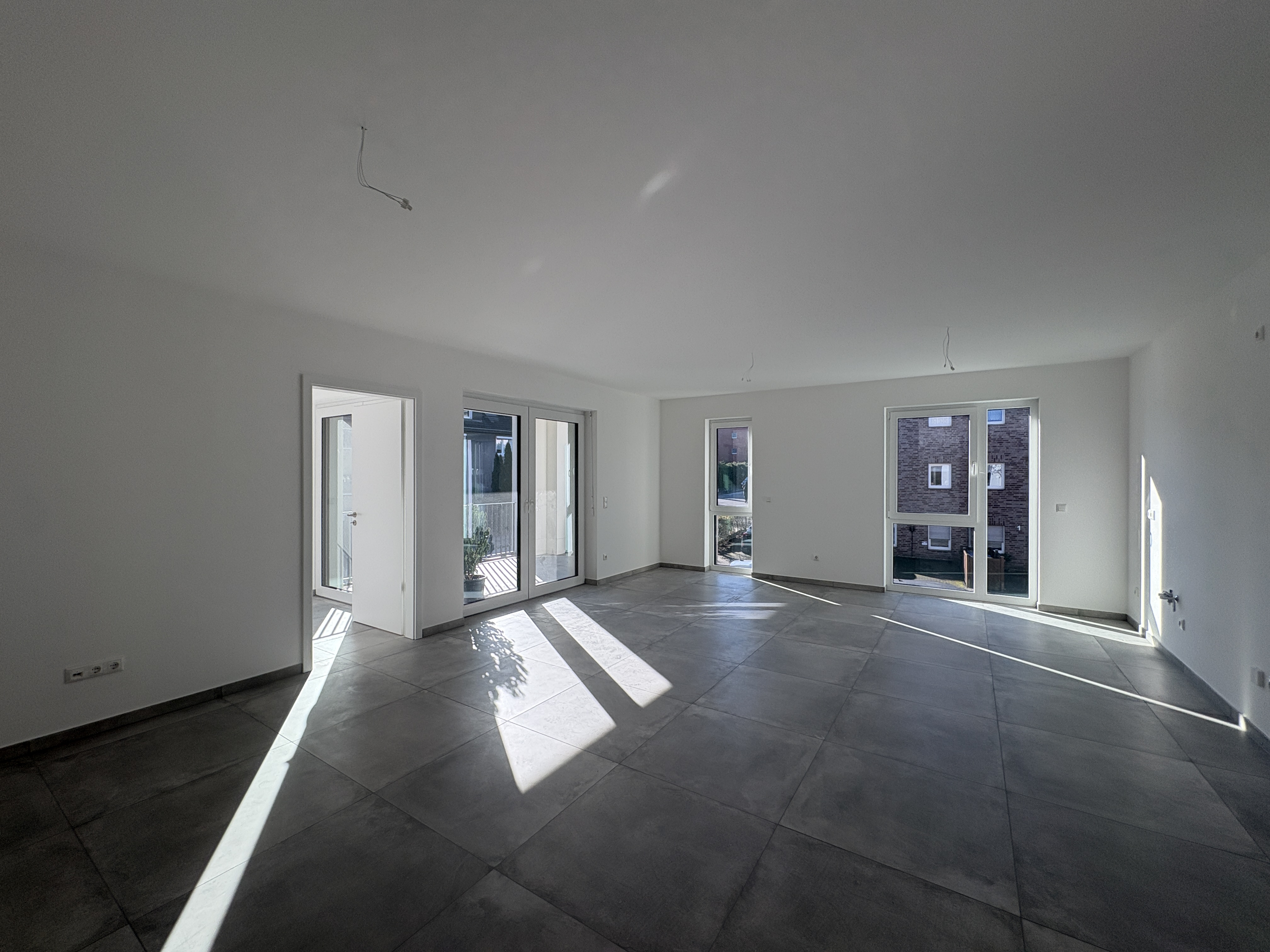 place a couch with a tv on the left and a small dining table with a kitchen and kitchen island on the right do not change the angle of the camera or the position of the door and window the sockets and switches should also remain in approximately the same place so only add furniture to the image and do not create a new one make sure that all units of measurement remain the same the length and width of the walls should not change furnish the living room do not change the base image and make sure all floor plans remain the same and outlets etc stay the same do not close the windows left the area does not have to be fully visible you can just partially show it so that the proportions fit