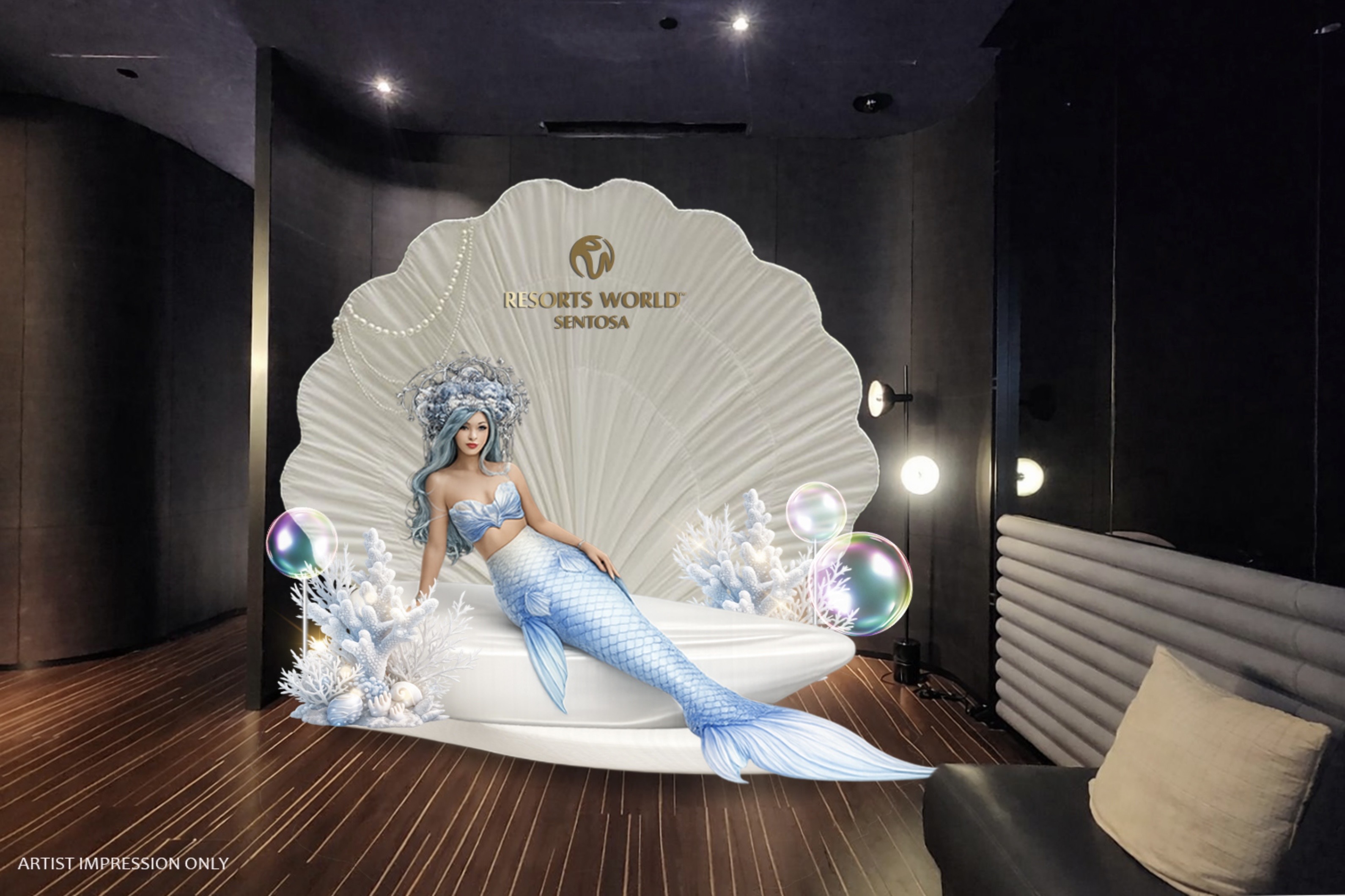 decorate the seashell backdrop with attached fabric drape and jelly fish sculpture