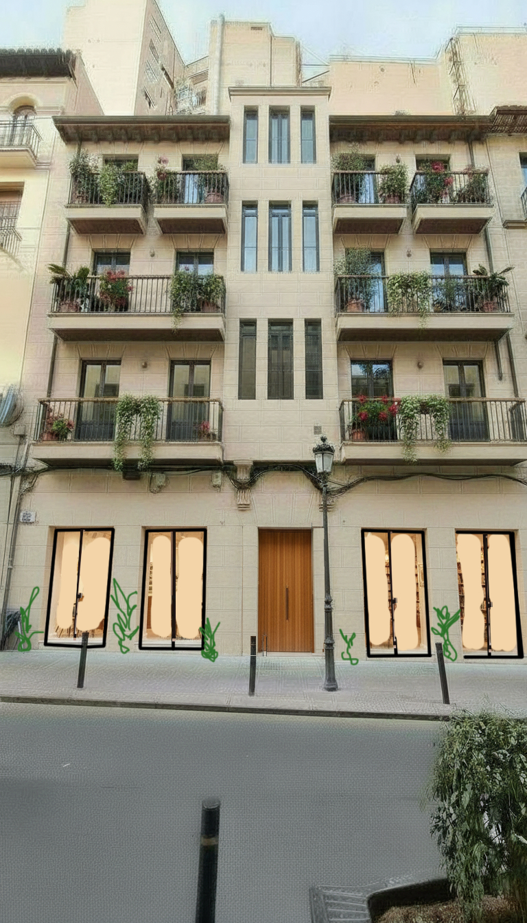 put the dark carpentries of the grund floor and green plant on the street level