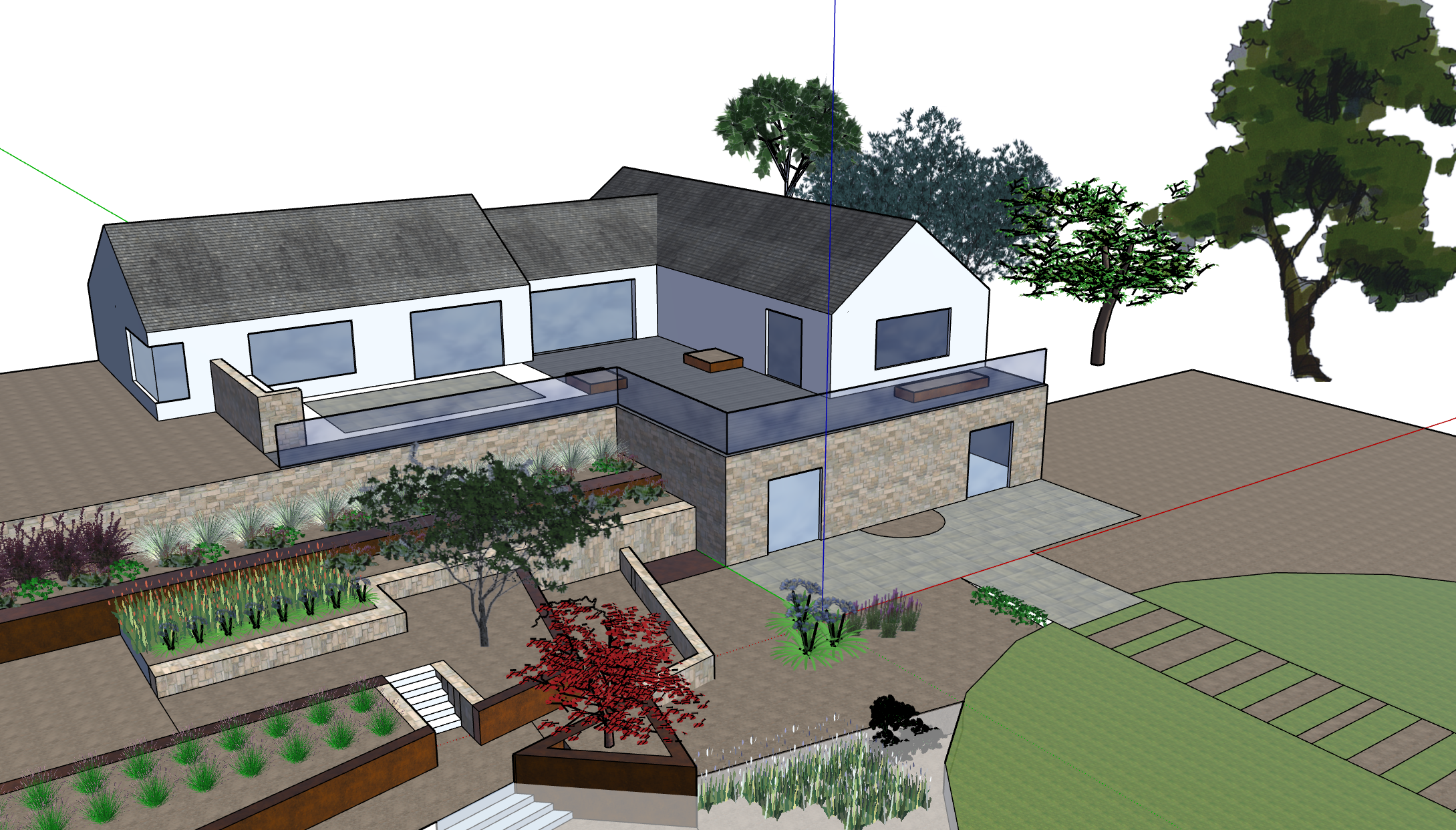 add more ornamental grasses in the beds around the circular lawn