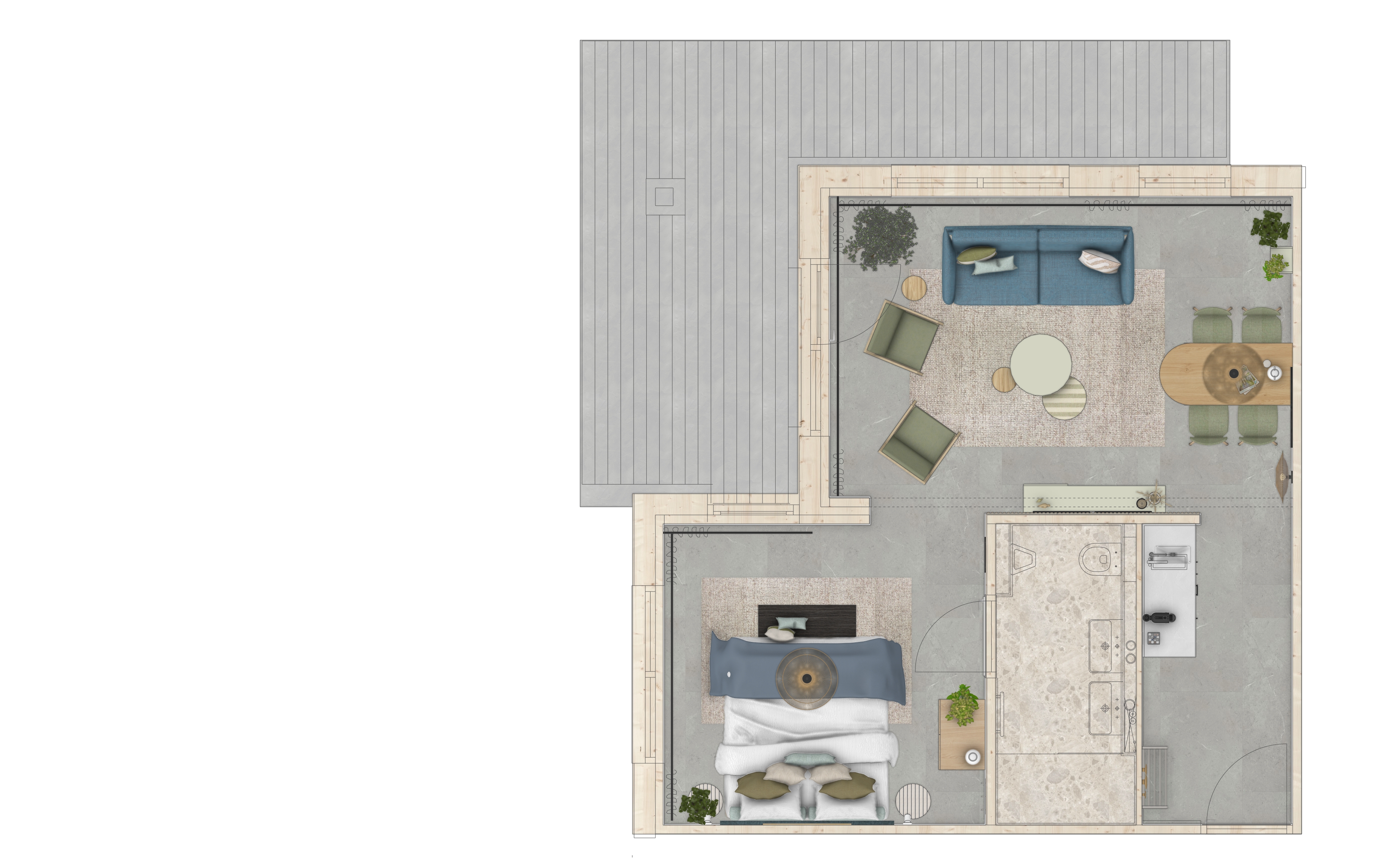 top down view of this floor plan photorealistic realistic shadows natural lighting no perspective distortion 2d plan view
