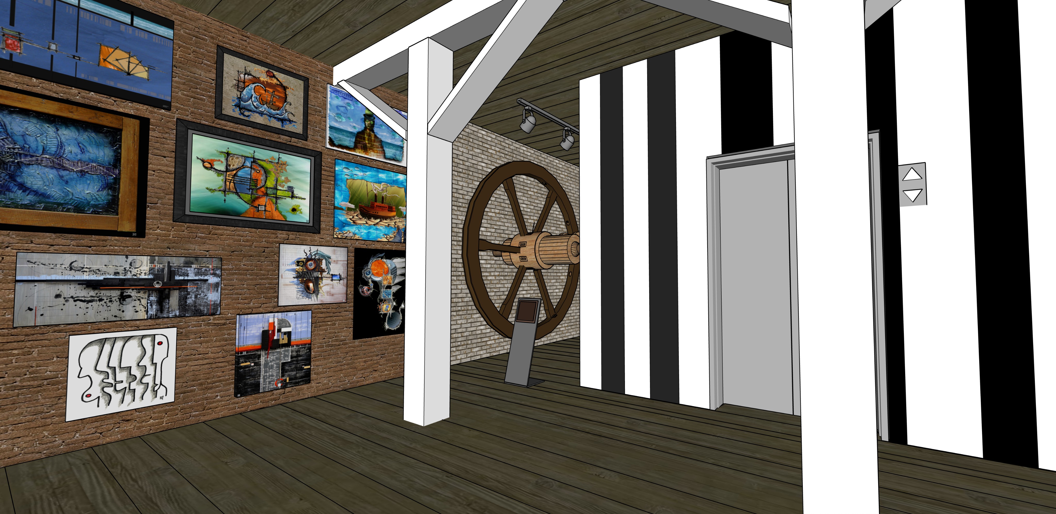 make the white columns and beams appear to be rustic add some tropical house plants to the left hand side of the image