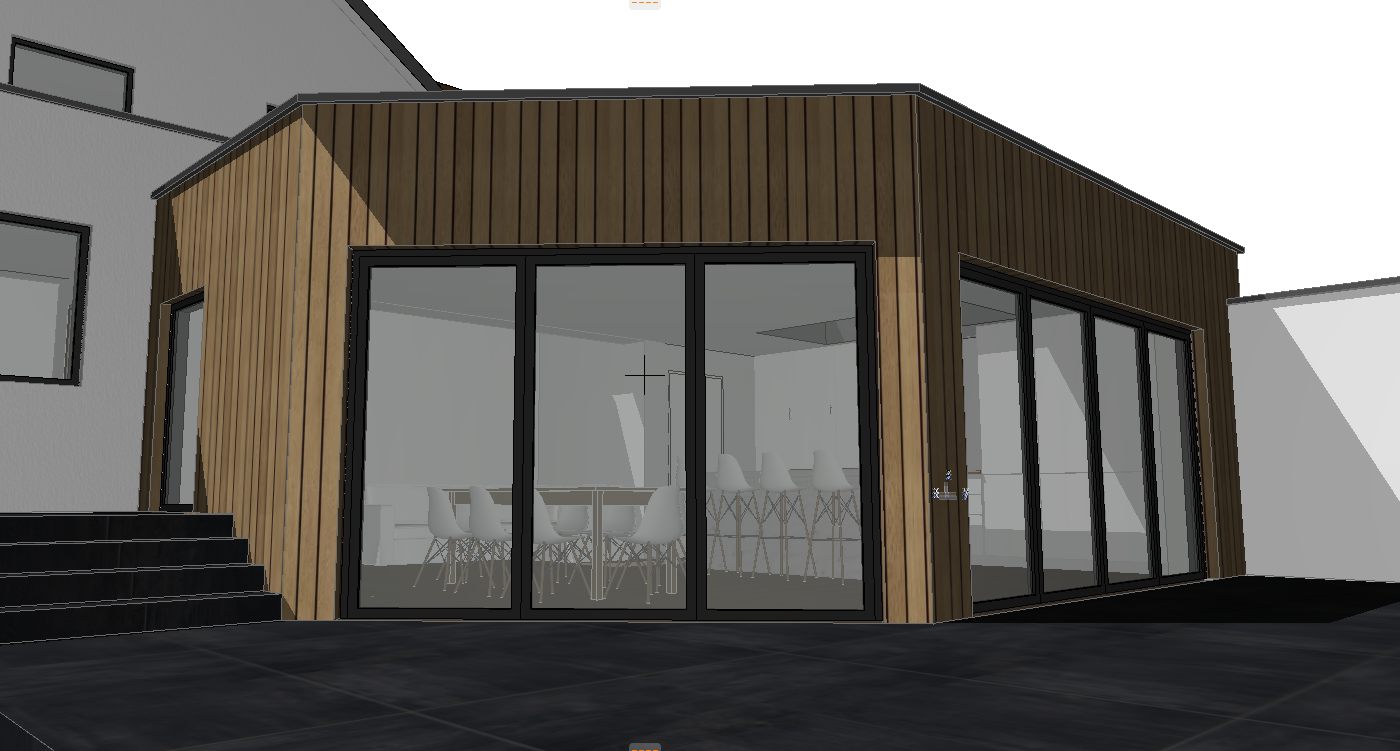 interior of a modern minimalist open plan kitchen and dining area during the day the kitchen features sleek white cabinets with stainless steel handles and a chic marble island with a smooth finish four elegant white bar stools with natural wooden legs are aligned at the island the dining table crafted from rich dark wood is surrounded by white chairs the room is flooded with natural light streaming through large floor to ceiling windows casting soft shadows and creating a warm inviting atmosphere the flooring is a dark hardwood adding a sense of depth and sophistication the walls and ceiling are painted in a soft light gray enhancing the airy ambiance