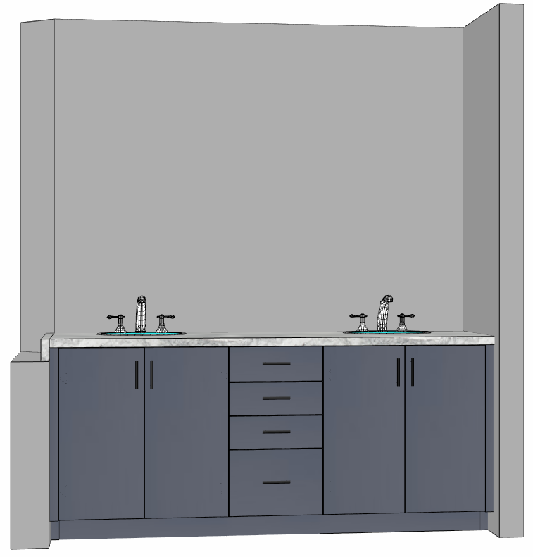 do not change the cabinets in any way preserve the exact cabinet colors materials finishes dimensions door and drawer styles hardware spacing alignment and all geometry exactly as shown do not alter the countertop shape backsplash appliances flooring lighting fixtures or wall structure only remove the construction materials clutter and mess from the scene clean the room and make it look finished and staged add a few simple tasteful home accessories appropriate for the style of the space but do not add or remove any furniture windows or architectural elements maintain the original lighting direction and realism enhance clarity and polish the photo while keeping the cabinetry and room design completely unchanged do not alter the lighting to keep the cabinet colors as they are in the image keep the white background just make it look realistic the cabinet color is a navy high gloss