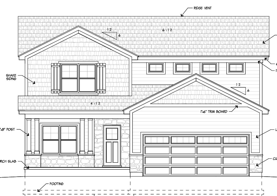 walnut garage door black roof light tan siding light tan shakes light brown stone white pillars white windows add the stone on the porch wall floor to ceiling