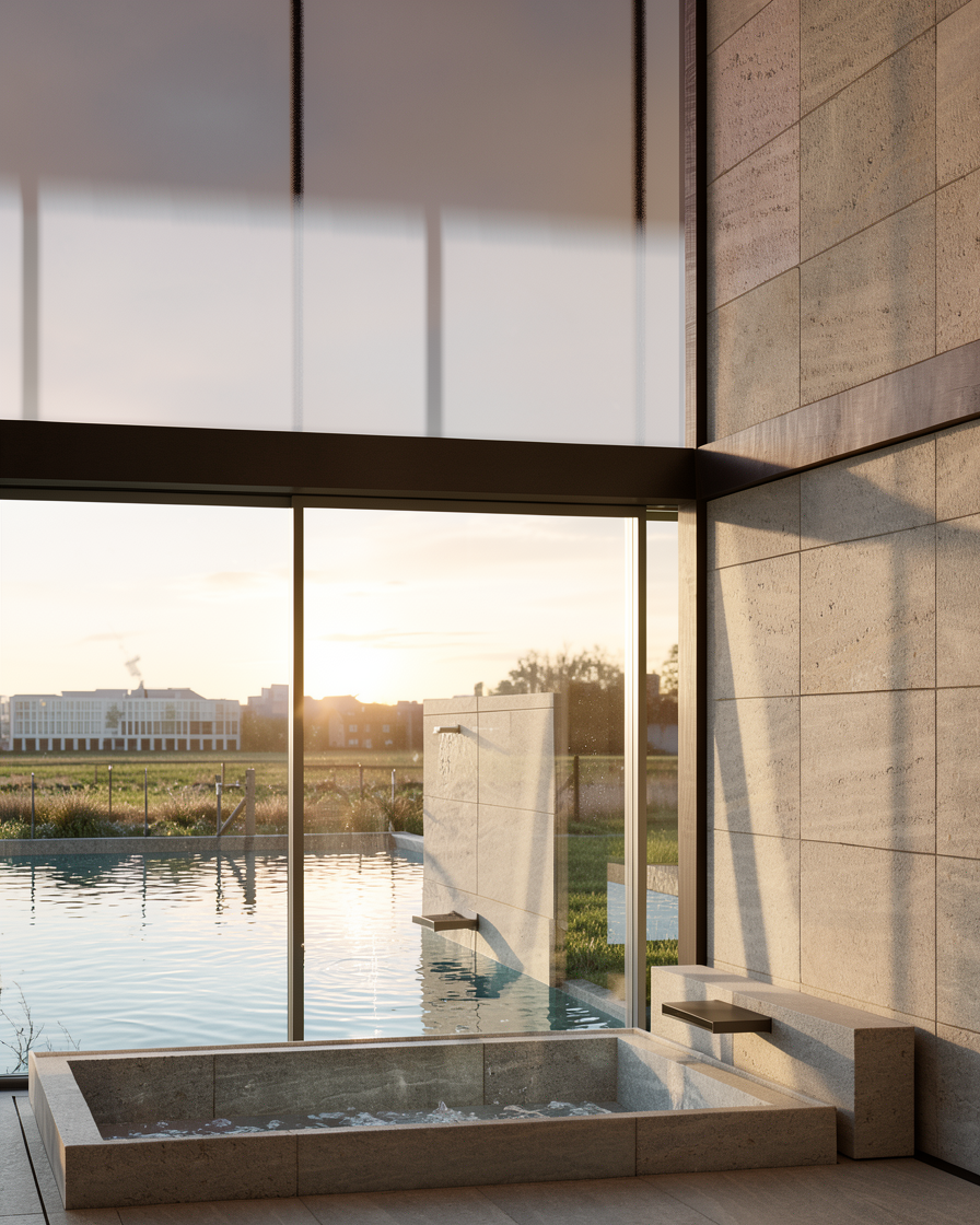 a two storey white brick factory front facade