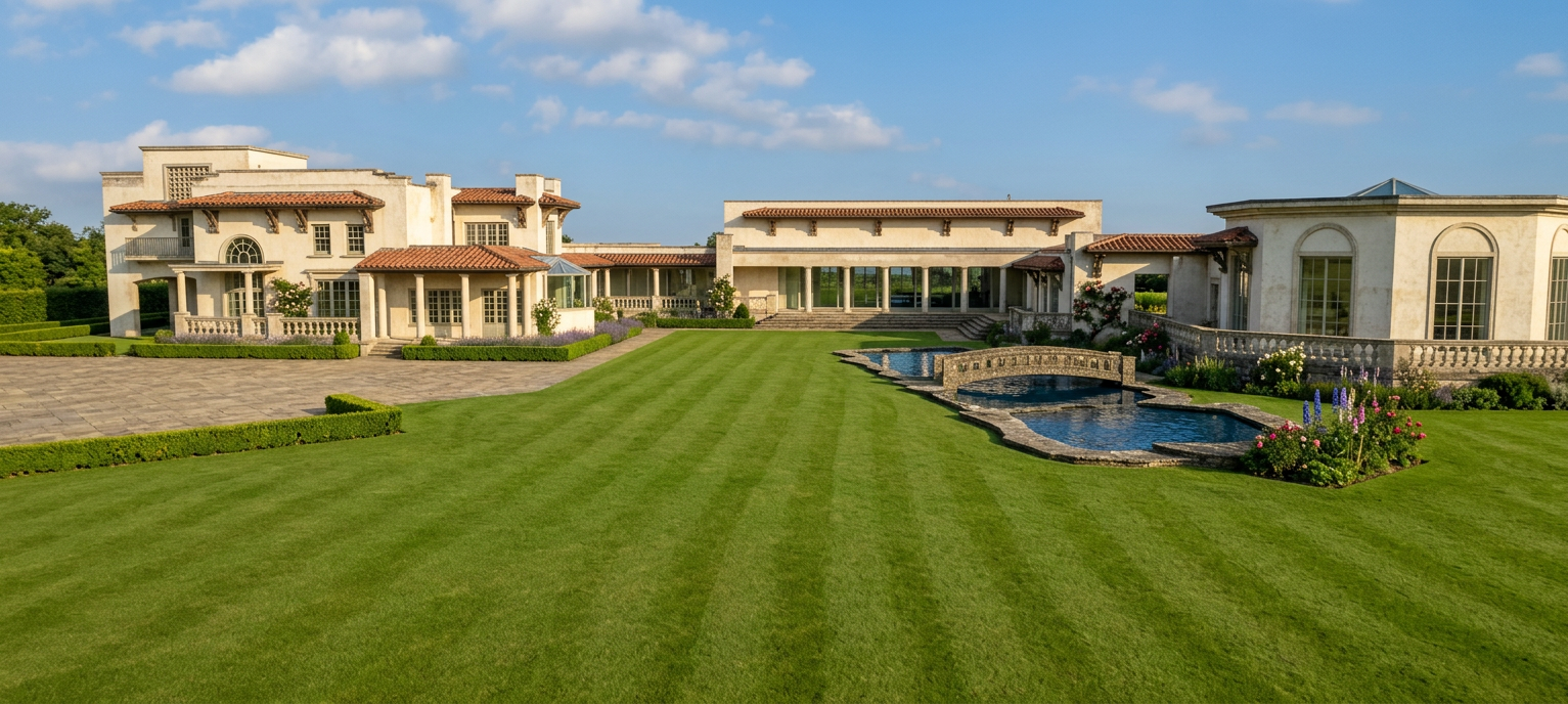 rendu architectural ultra r aliste de cette maison avec menuiseries noires en aluminium pr sence d une pergola moderne cr ant des ombres sur la fa ade jardin paysager avec gazon parfaitement entretenu arbustes d coratifs plantes graphiques type agave et dracaena et arbres feuillus en arri re plan lumi re naturelle douce de fin de matin e ombres r alistes mat riaux pbr textures d taill es rendu 8k de qualit architecte style photographie immobili re haut de gamme composition en l g re contre plong e ambiance chaleureuse et l gante