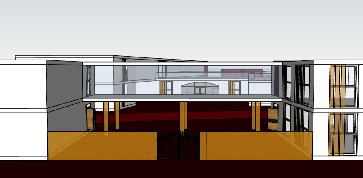 beaux arts night shot render with grass on the ground with fence on the front door architecture