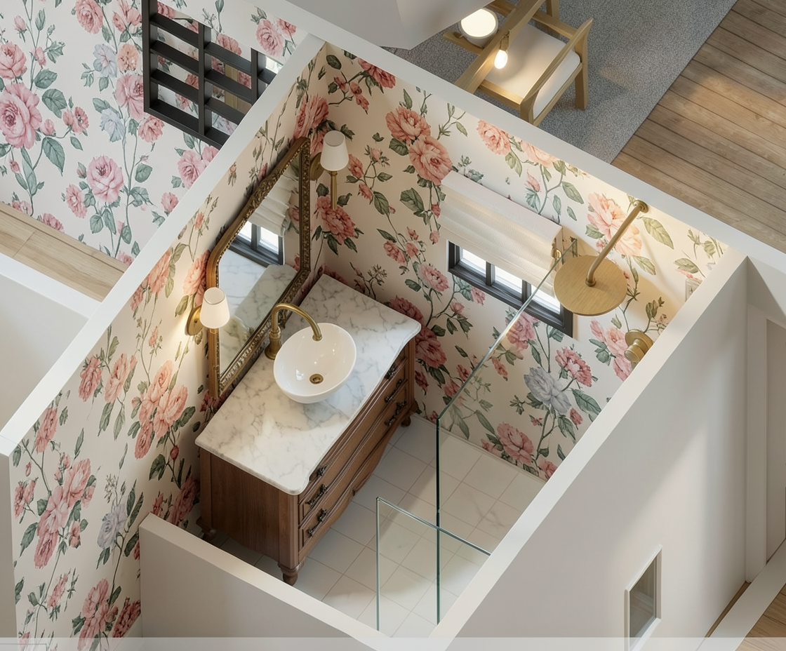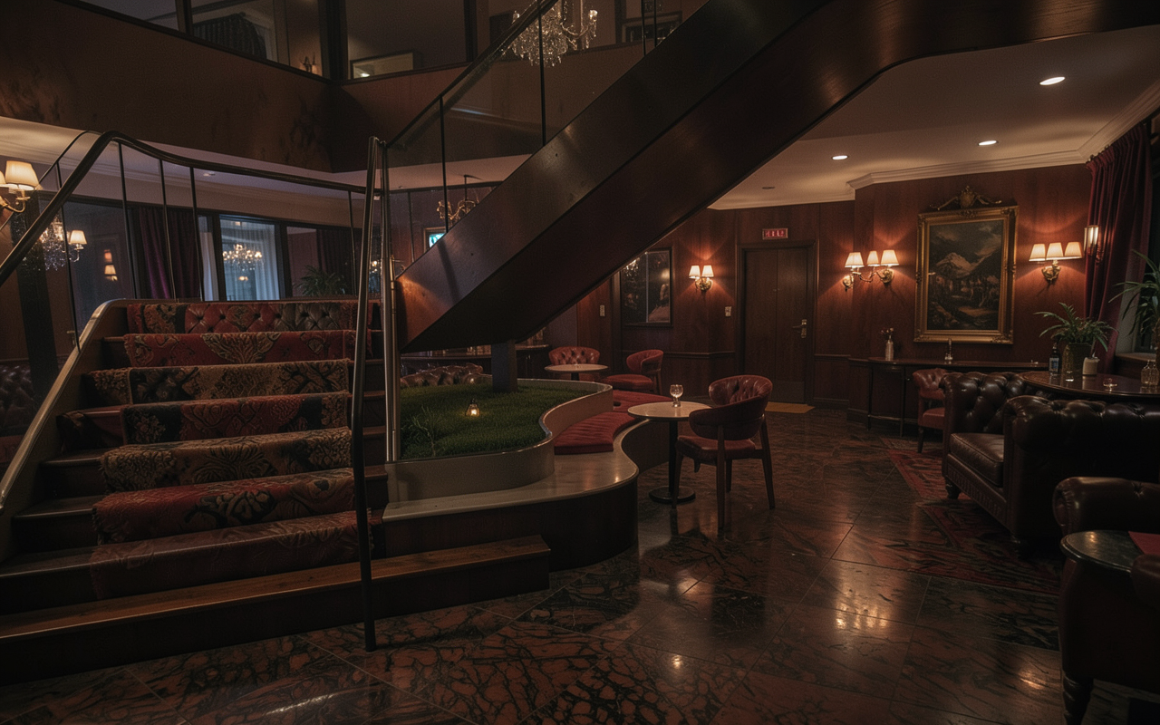 maintain all geometry and material colors create a hyper realistic night interior rendering show the ceiling white with a flat paint finish