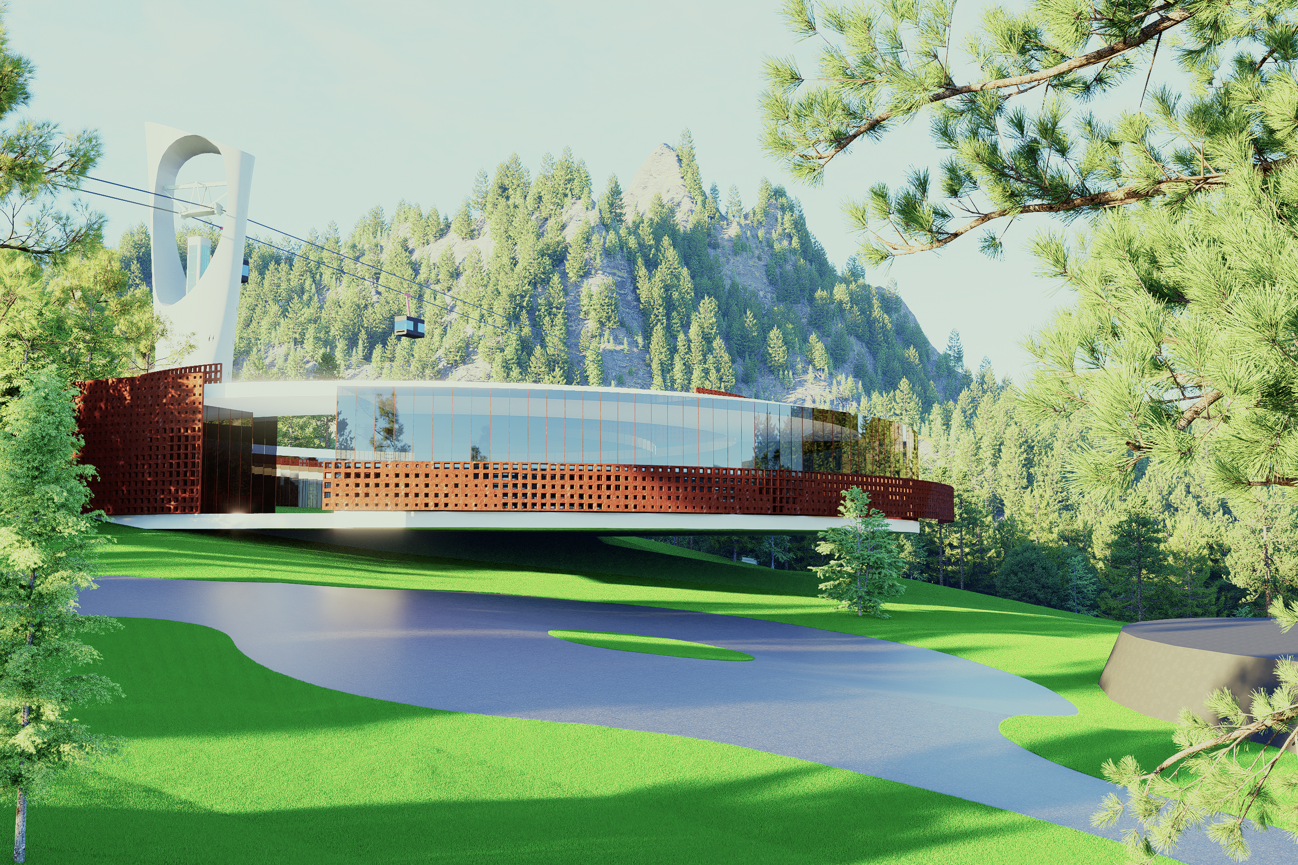 lots of pine trees around with some low lying shrubs and evergreens road should be finished in asphalt