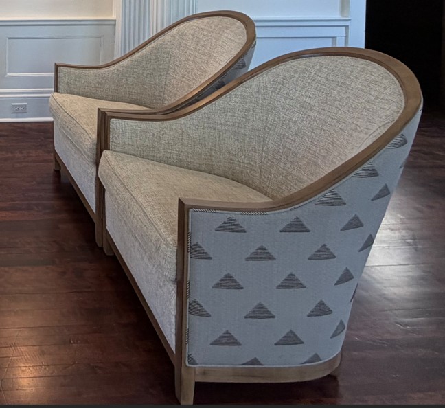 add this fabric to the back of the chair in dreams velvet in persimmon