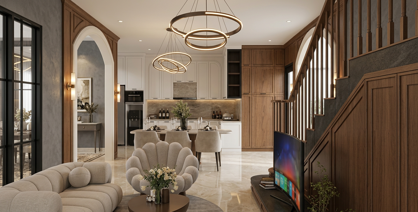 a terra abbiamo un parquet in rovere chiaro continuo dopo l arcata abbiamo un pavimento in linoleum beige chiaro il banco della reception in vetro cannettato con fondo specchiato e non ha le strip led da nessuna parte lo zoccolo della reception nero e anche il bordino sottile sotto la piana la piana del banco in graniglia bianca sopra la piana ci sono due lampade a sospensione accese dietro al banco la parete rivestita con lo stesso parquet in rovere chiaro continuo posato a pavimento con il logo illuminato sui bordi non ci sono da nessuna parte strip led come illuminazione metti qualche deplian e delle penne sopra al banco reception uno o due zaini per fare una zona conviviale e accendi la tv sulla sinistra il piano da gioco del biliardo grigio antracite la tenda in fondo di fianco al biliardo verde il soffitto bianco