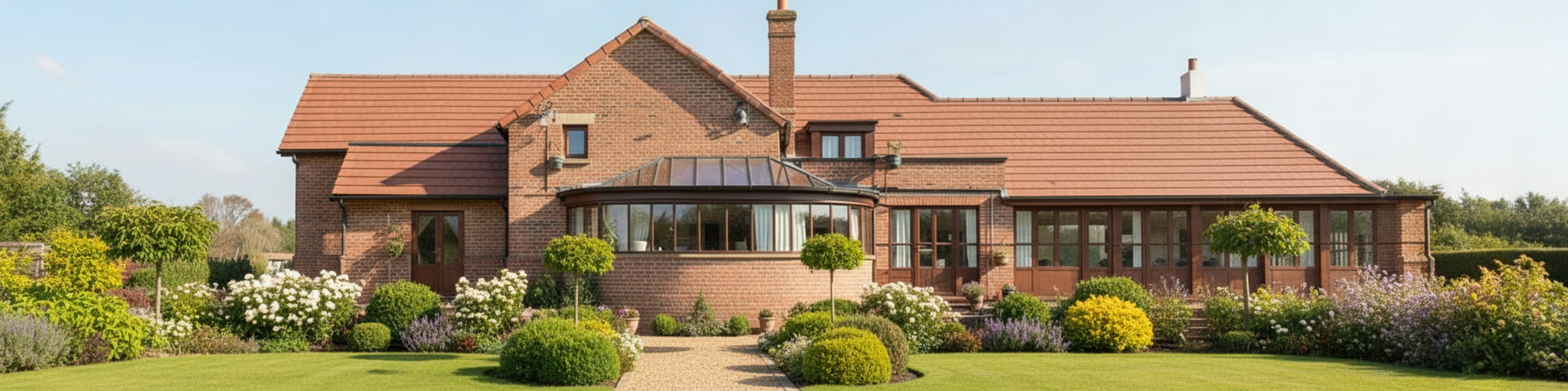 improve provide a 3d view of this in a wooded setting at the rear looking over a lake more glazing less window frames