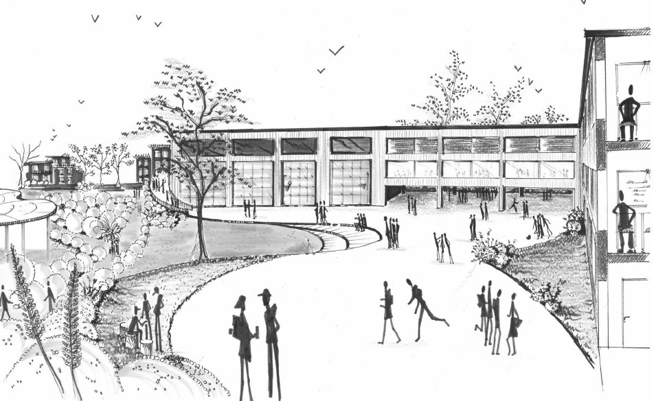modernist perspective shot school architecture