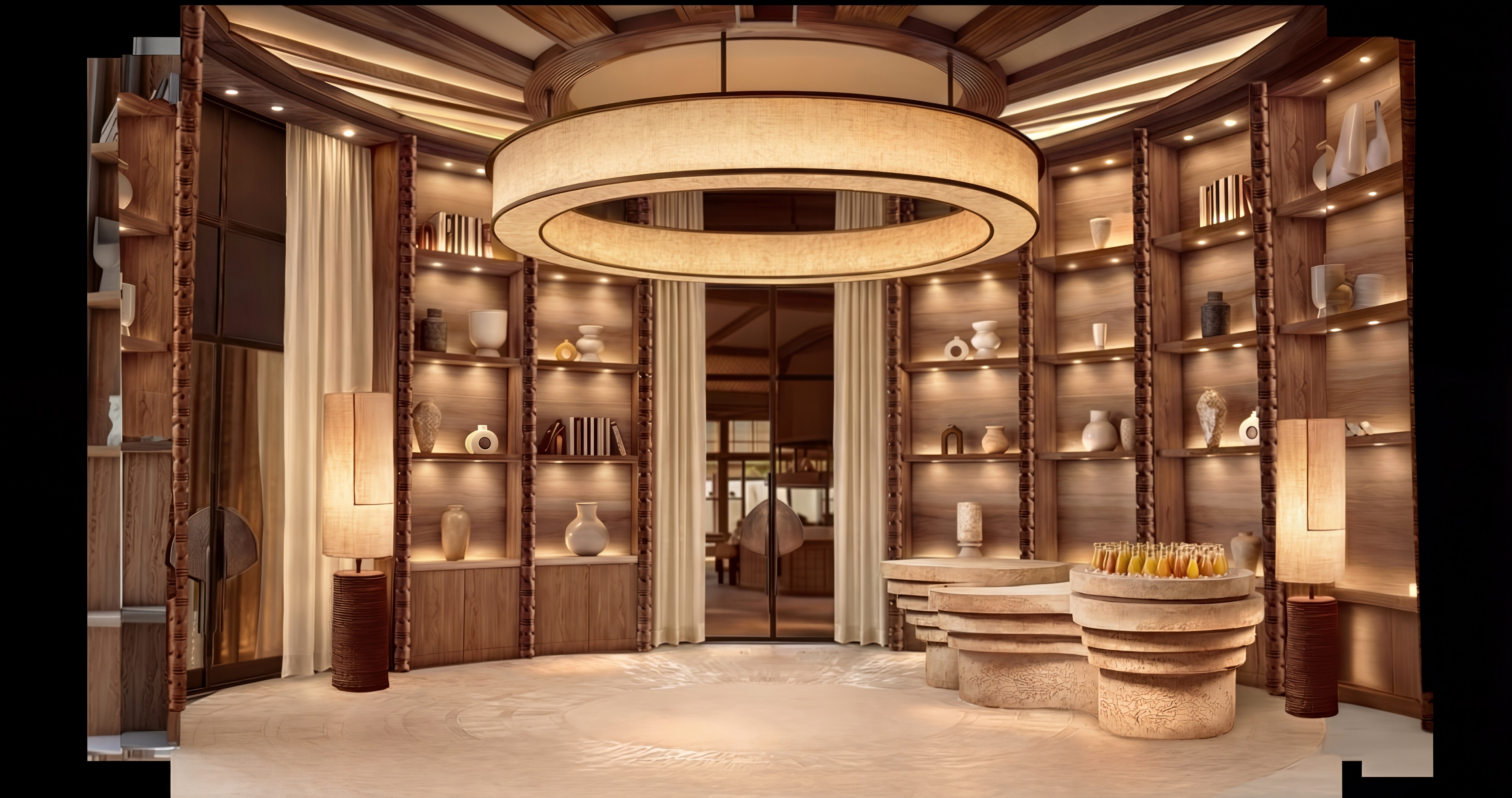 add rammed earth texture behind the shelves keep everything else as it is make it photorealistic
