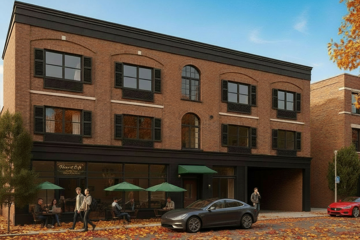 same brick treatment on all the upper floor