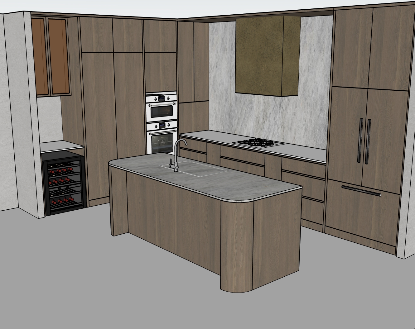 sides and front of island timber