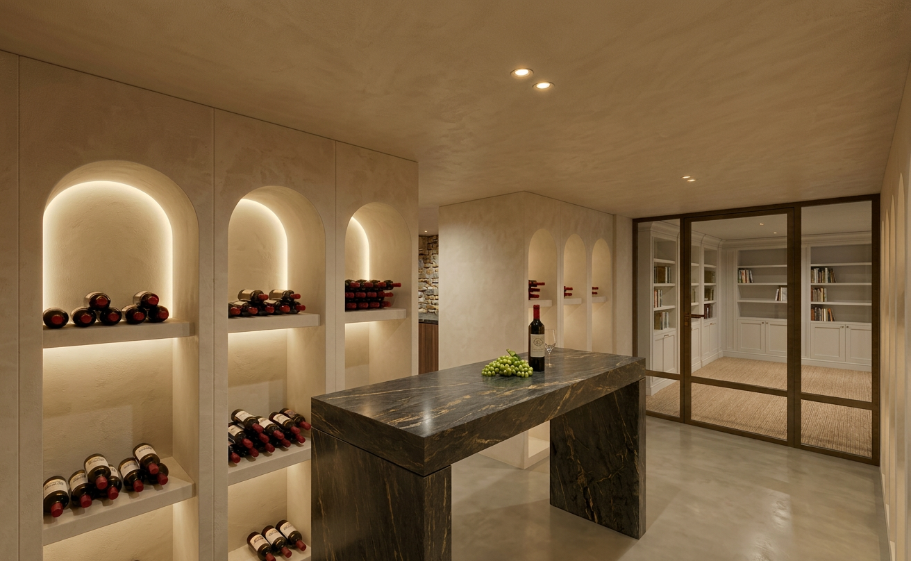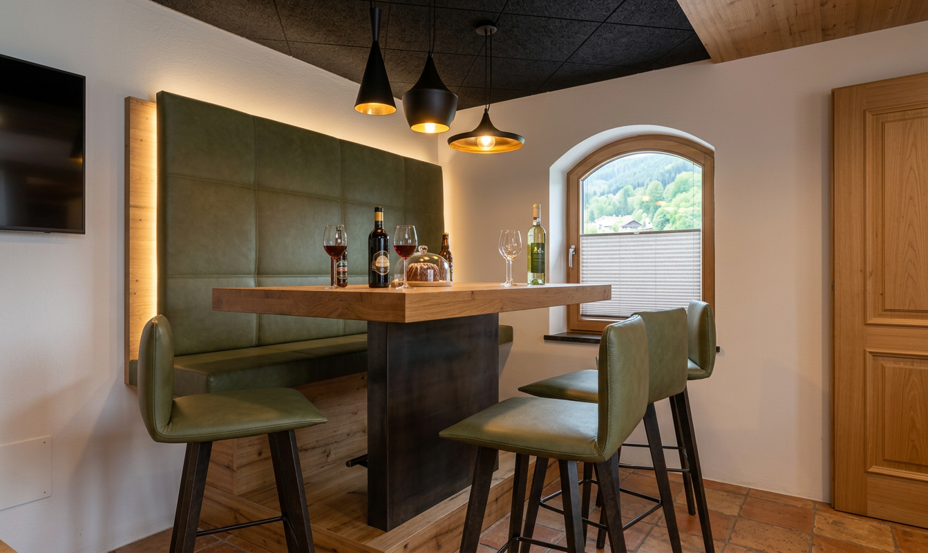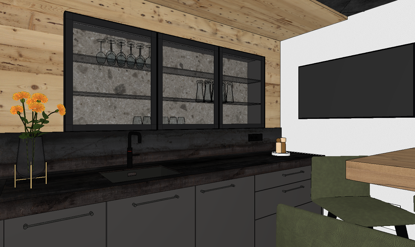 fabrics is made out of leather in olive green add indirect lightening in the glass cabinet