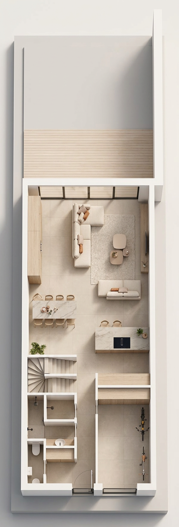 high end architectural visualization based strictly on the provided image important constraints must follow keep the existing architecture 100 unchanged no new buildings no extra containers no added volumes do not modify move resize or reinterpret the existing structures preserve exact geometry proportions spacing and composition intervention is allowed only in the foreground lawn area background buildings terraces and modules must remain identical to the source image only enhance materials lighting and atmosphere subtly style luxury mediterranean beach club with contemporary minimalist design natural materials warm and inviting atmosphere landscape intervention only in the grass area transform the lawn into a refined landscaped garden while preserving openness introduce subtle organic pathways sand and wpc decking naturally integrated clean curated composition minimal and elegant no clutter water features key element vertical water fountains designed as minimalist steel porticos thin rectangular frames made from brushed or weathered steel integrated vertical linear water jets inside the frames soft cascading water and fine mist elegant well spaced placement within the landscaped area subtle wet reflective surfaces beneath each fountain vegetation controlled coastal planting clusters not dense ornamental grasses lavender tamarix sea buckthorn keep clear visual corridors toward the architecture materials wpc decking walkways sand and coconut fiber paths light wood accents brushed steel elements lighting atmosphere important golden hour sunlight soft warm tones cinematic shadows introduce a soft sunny haze in the background background elements far buildings horizon distant details slightly obscured by warm atmospheric haze maintain foreground crisp and detailed gentle light diffusion and atmospheric perspective realistic reflections on glass steel and water subtle glow on water features atmosphere relaxed luxury airy elegant uncluttered soft depth of field very subtle people optional sparse elegant guests not crowded rendering quality ultra realistic 4k resolution cinematic composition color palette neutral sandy tones warm wood natural greens subtle water reflections dark steel accents negative prompt very important no new buildings no extra modular units no containers added no architectural redesign no change in camera angle no change in building layout no dense or chaotic landscaping no heavy fog keep haze light and warm not opaque