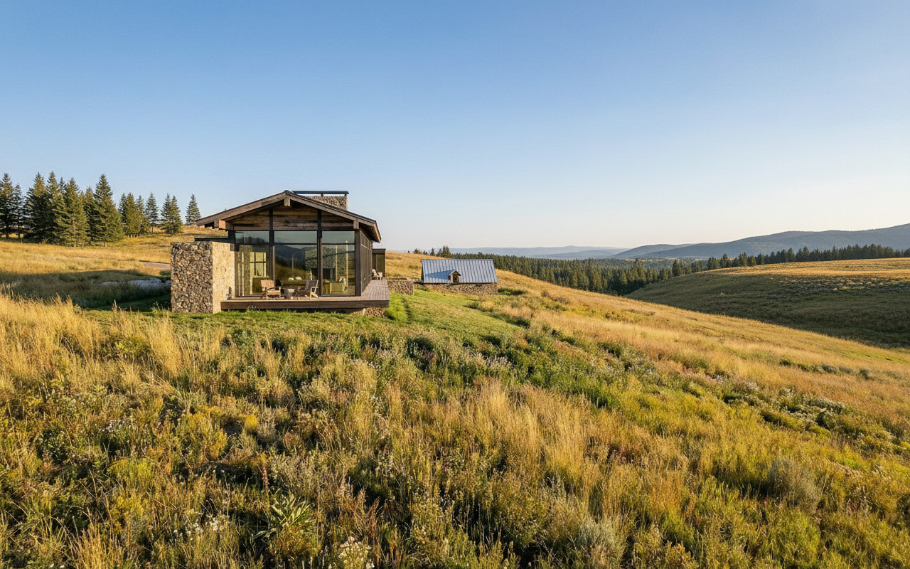 add rustic trim and lighting to this interior image render in hyper realistic photo image be consistent with trim keep ceiling beams as red iron beams