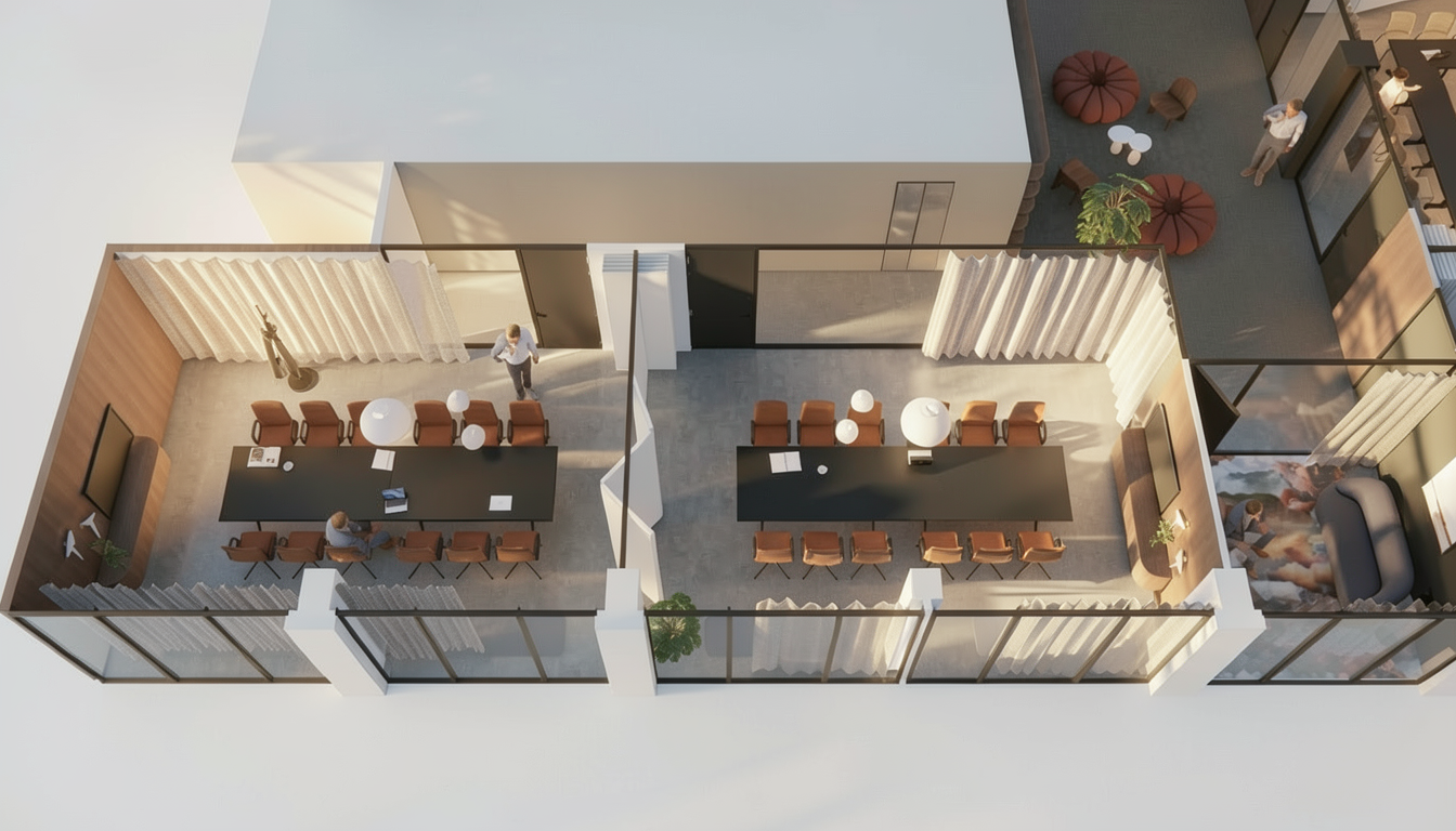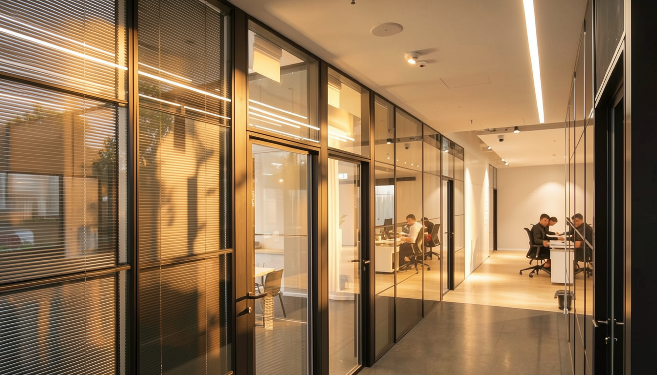 render a modern minimalist bathroom with a sleek sophisticated atmosphere use matte charcoal gray for cabinets and partition frames soft light gray for walls and floor tiles and glossy white for the sink and toilet accent the room with brushed dark metal fixtures ensuring subtle reflections incorporate a slightly frosted glass effect for the shower screen illuminate the room with warm recessed lighting to create a cozy yet elegant ambiance