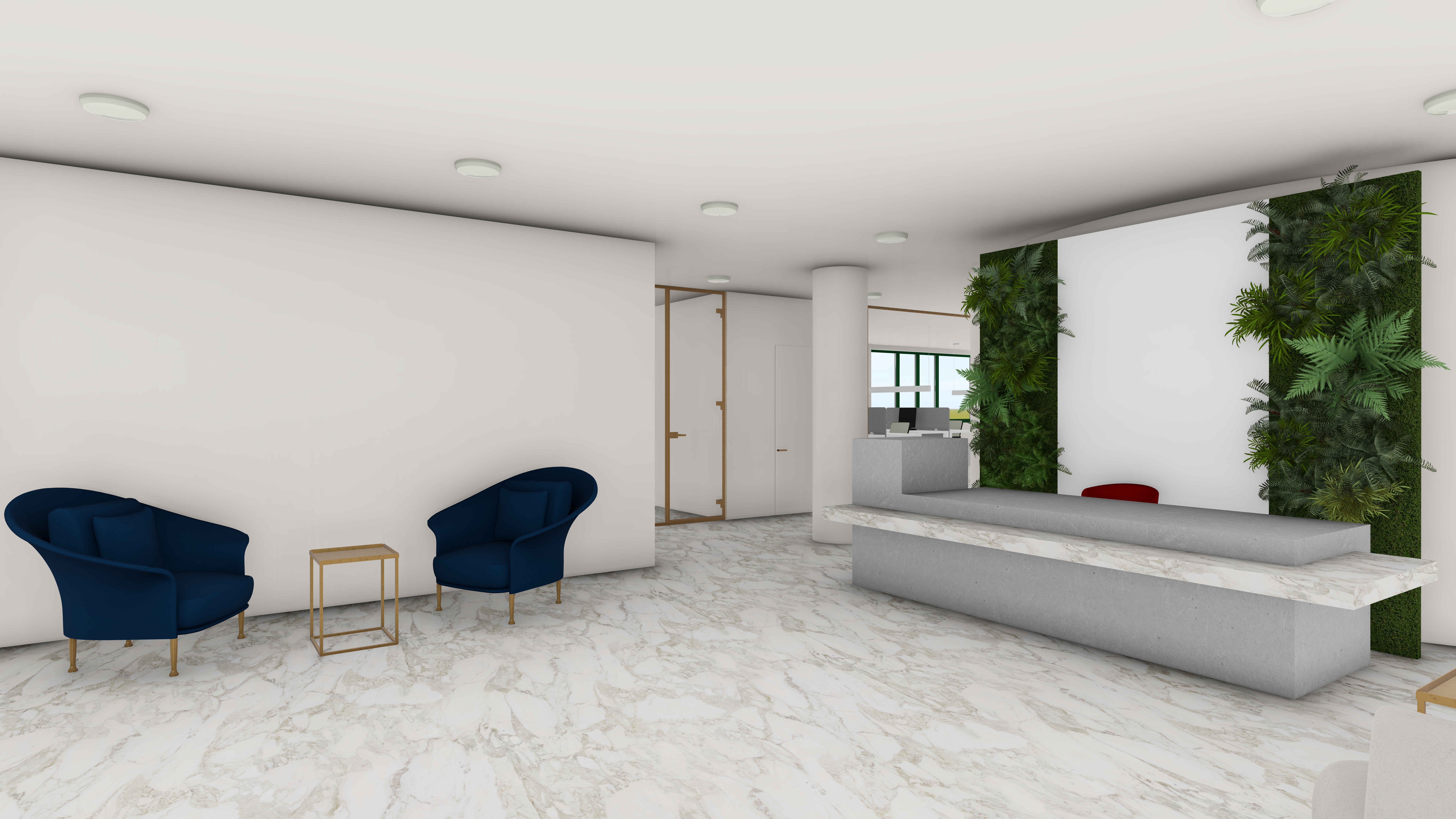interior shot the floor is marble and the ceiling is white