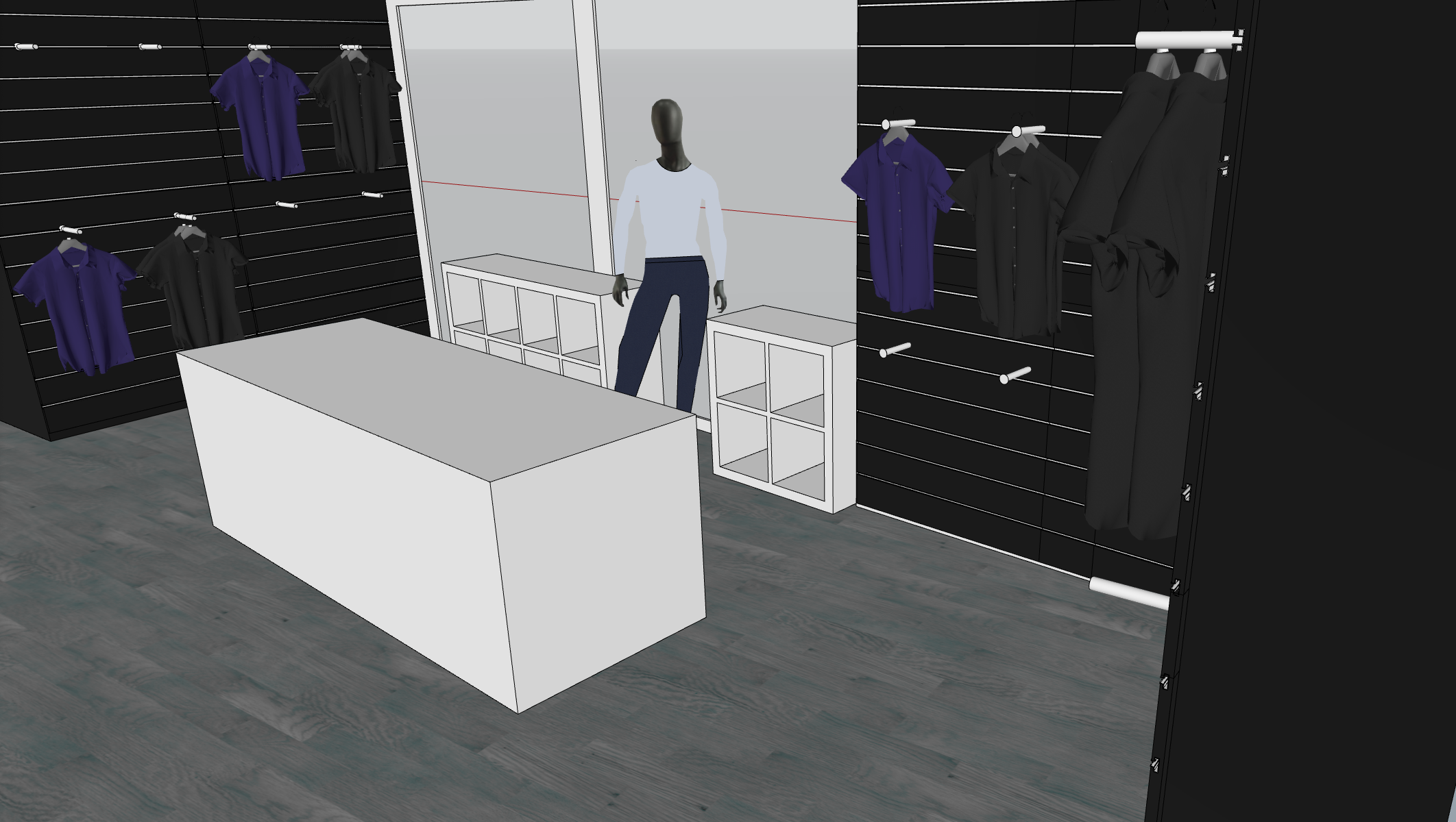 exterior shot this is a small merch shop for football team colors should stay pretty much the same the window could show quiet street with cars on the back ground