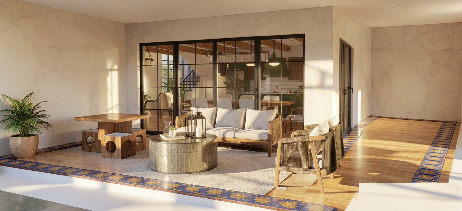 render as id with flat wood ceiling