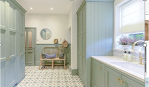 keep all elements of this layout including textures and colors change the white wall paint to this wallpaper https www wayfair com decor pillows pdp joss main latika hydrangea garden 33 l x 209 w wallpaper roll w007858260 html piid 1612674025n in the wine color way leave the cabinets and wall trim in the green no other changes maintain a crisp photo realistic detail in the image